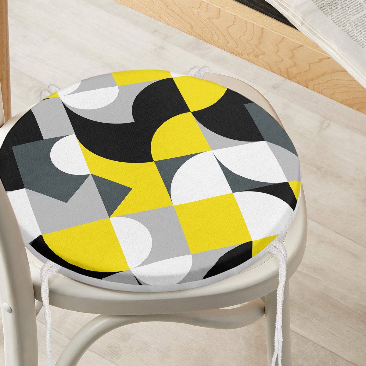 Geometrik Renkli Figürlü Dijital Baskılı Özel Tasarım Modern Yuvarlak Fermuarlı Sandalye Minderi