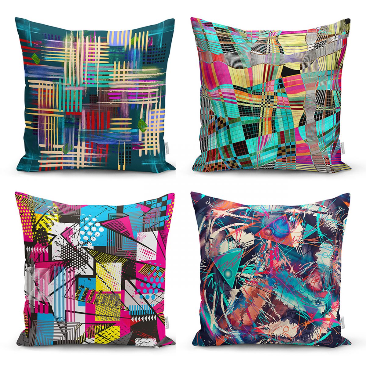 Geometrik Şekil Desenli Modern 4’Lü Kırlent Kılıf Seti