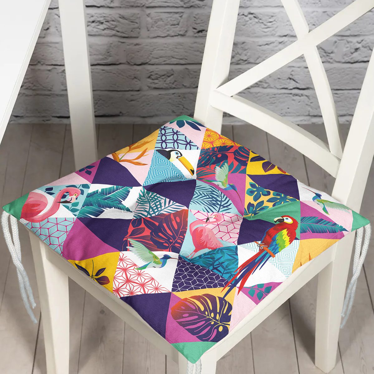 Geometrik Üçgen İçerisinde Kuş Baskılı Pofuduk Sandalye Minderi Realhomes