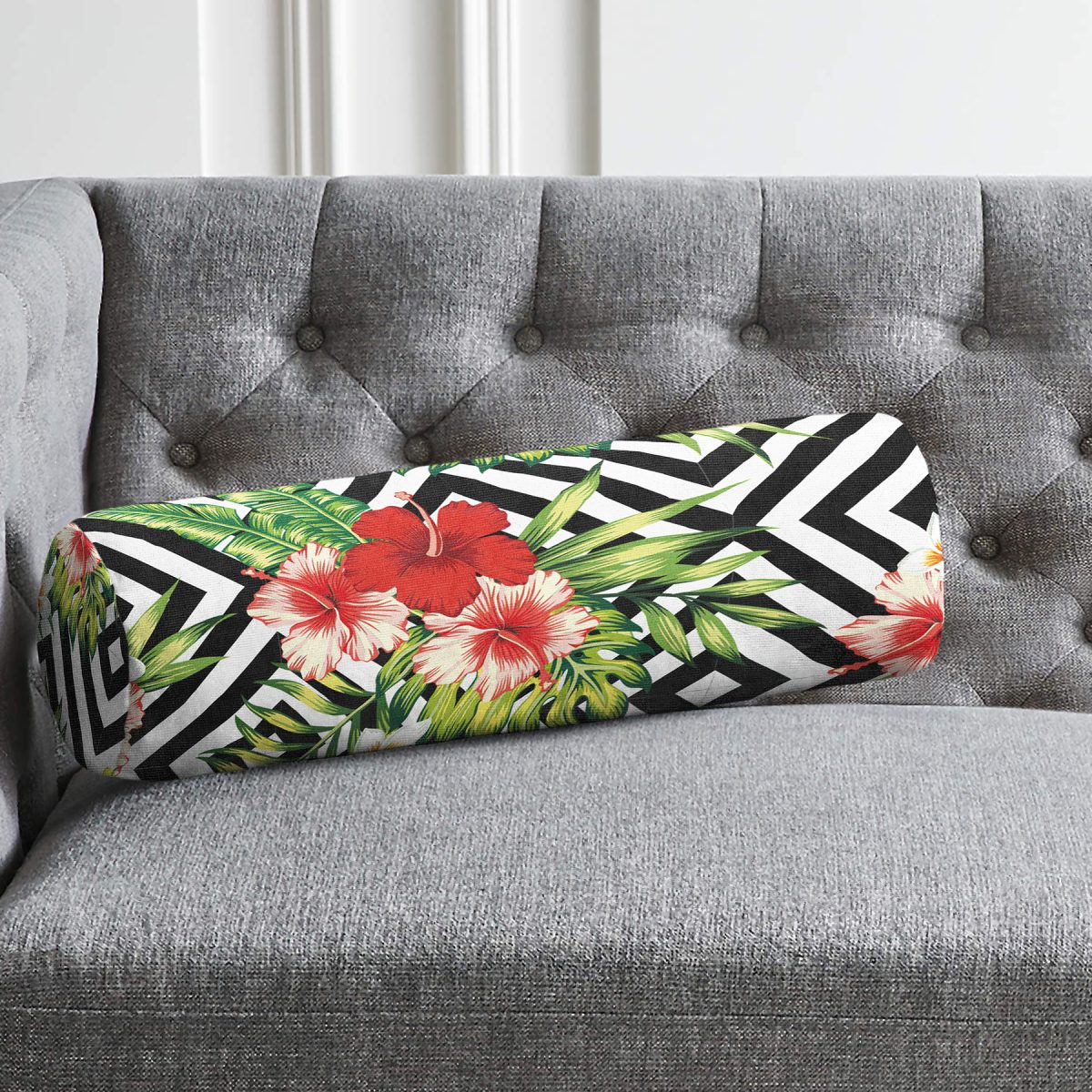 Geometrik Zeminde Çiçek Desenli İç Dolgulu – Fermuarlı Süet Silindir Rulo Yastık Kırlent
