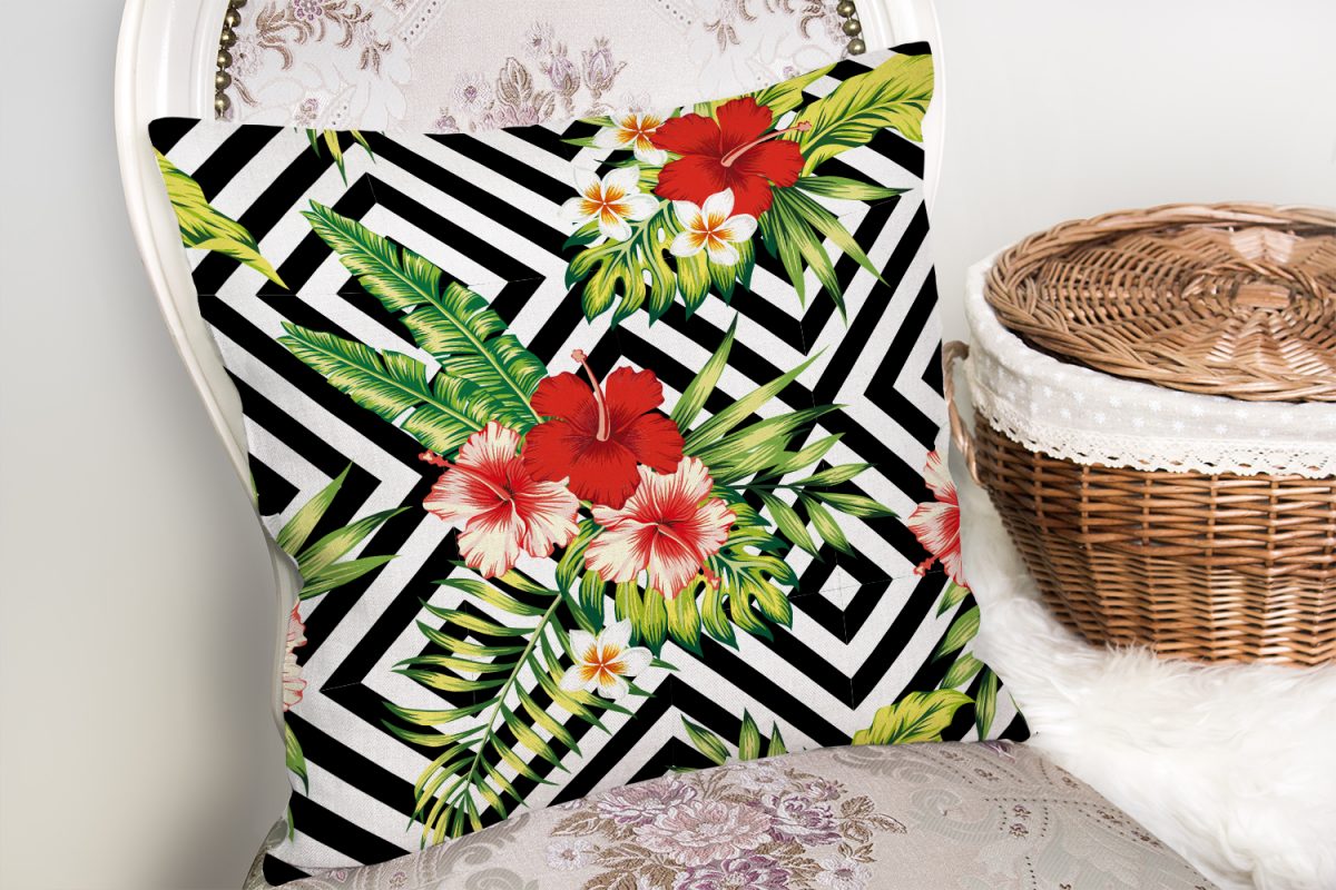 Geometrik Zeminde Çiçek Desenli Yastık Kırlent Kılıfı Realhomes