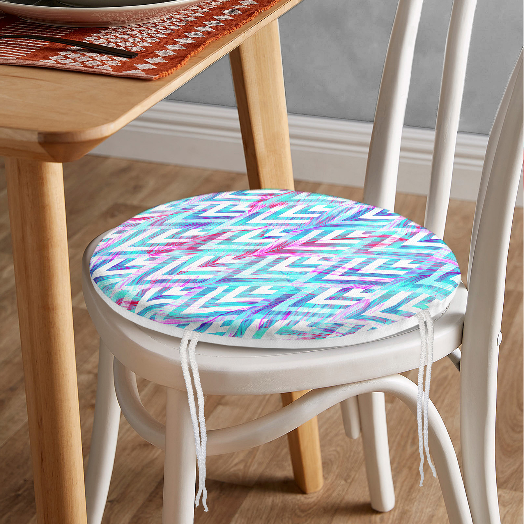 Geometrik Zeminde Tüy Desenli Modern Yuvarlak Fermuarlı Sandalye Minderi Realhomes