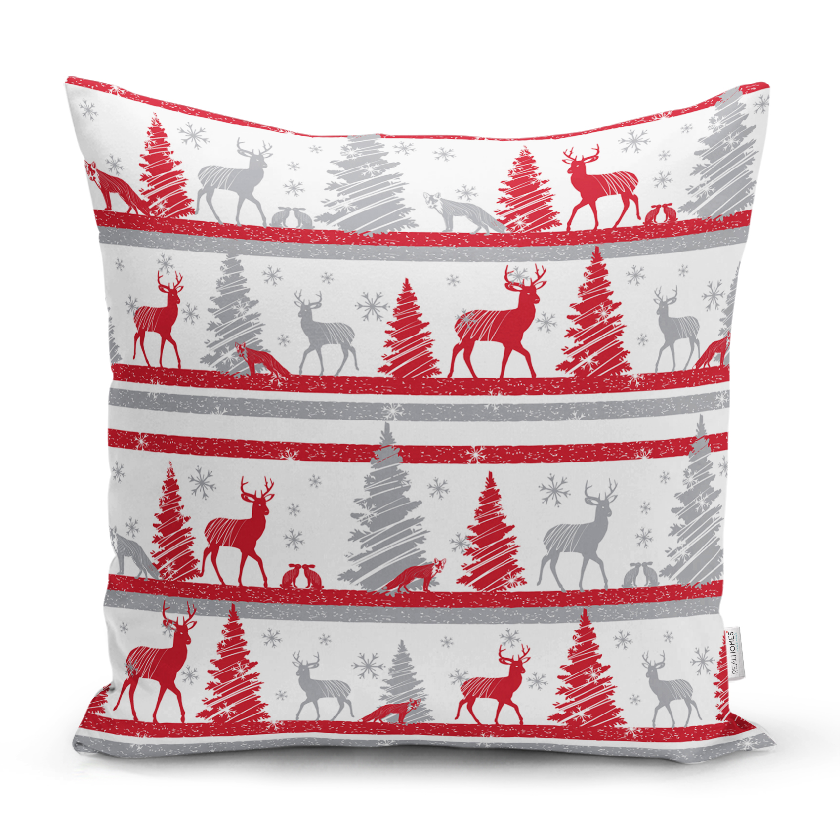 Geyik ve Çam Ağaçları Baskılı Dekoratif Yastık Kırlent Kılıfı Realhomes
