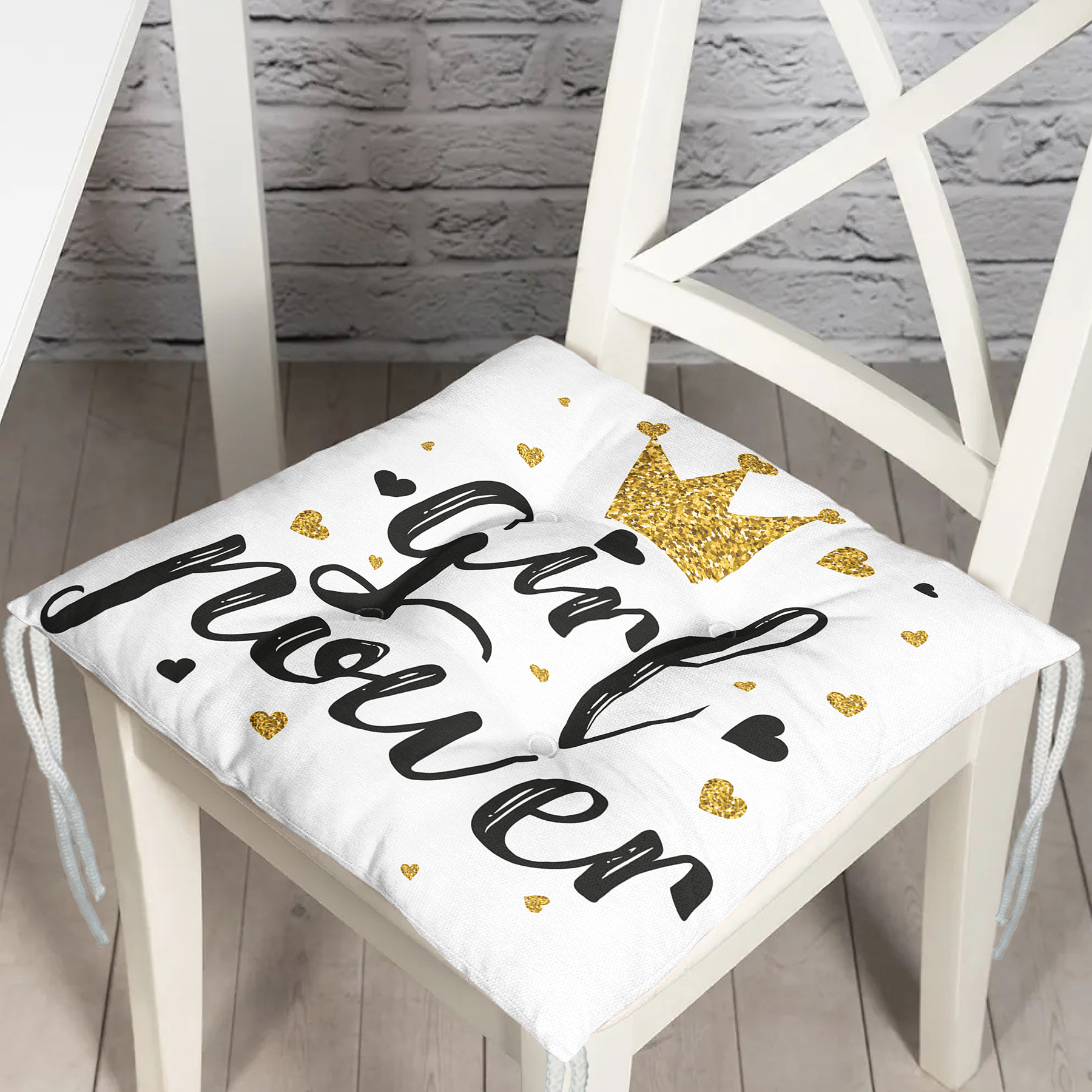 Girl Power Yazı Desenli Dijital Baskılı Modern Pofuduk Sandalye Minderi Realhomes