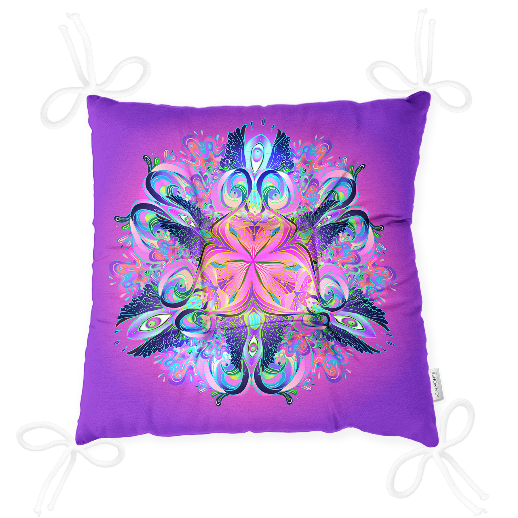 Gökkuşağı Motifli Renkli Çiçekli Özel Tasarım Pofuduk Sandalye Minderi