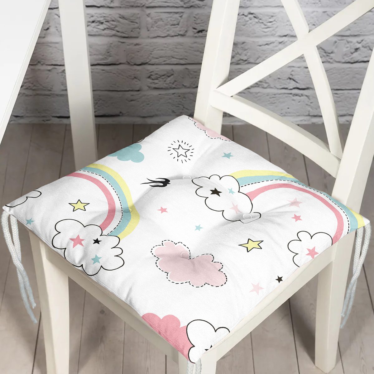 Gökkuşağı Ve Bulut Temalı Dijital Baskılı Özel Tasarım Modern Pofuduk Sandalye Minderi
