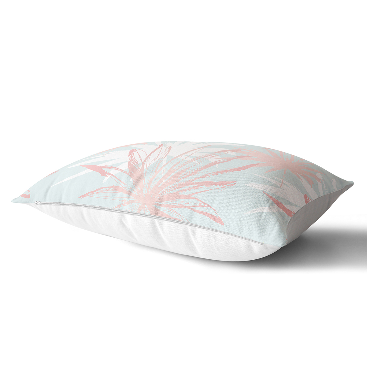 Gökyüzü Zemin Üzerinde Beyaz Ve Pembe Yaprak Tasarımlı Dikdörtgen Kırlent Kılıfı