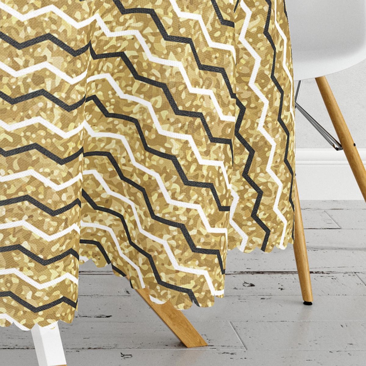 Gold Zemin Üzerinde Modern Renkli Zigzag Desenli Modern Yuvarlak Masa Örtüsü – Çap 140cm