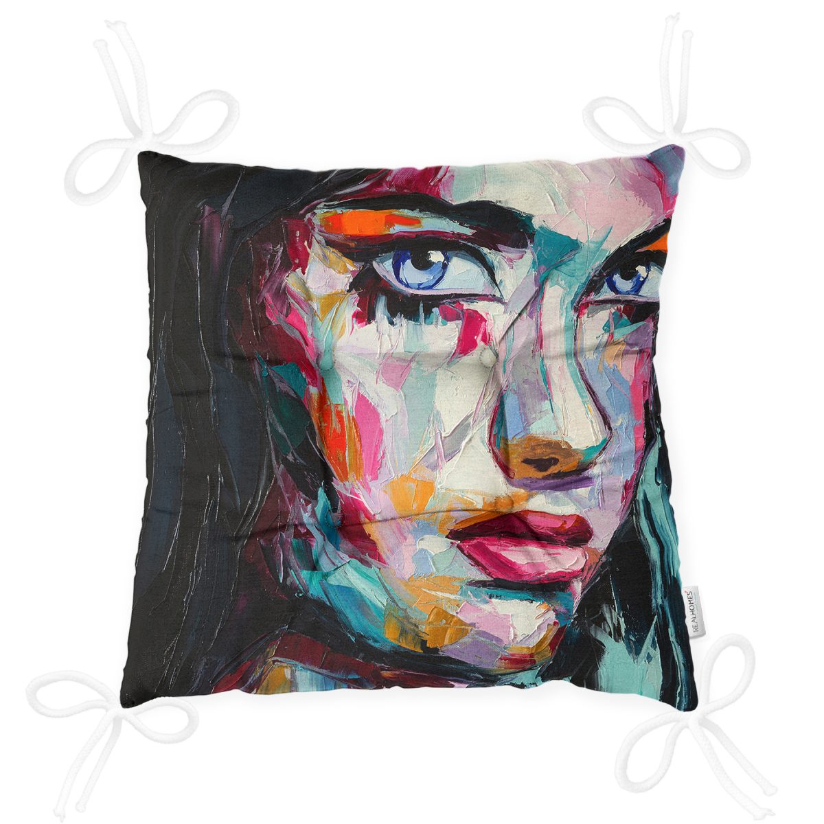 Göz Kirpik Dudak Motifli Sulu Boya Dekoratif Pofuduk Sandalye Minderi