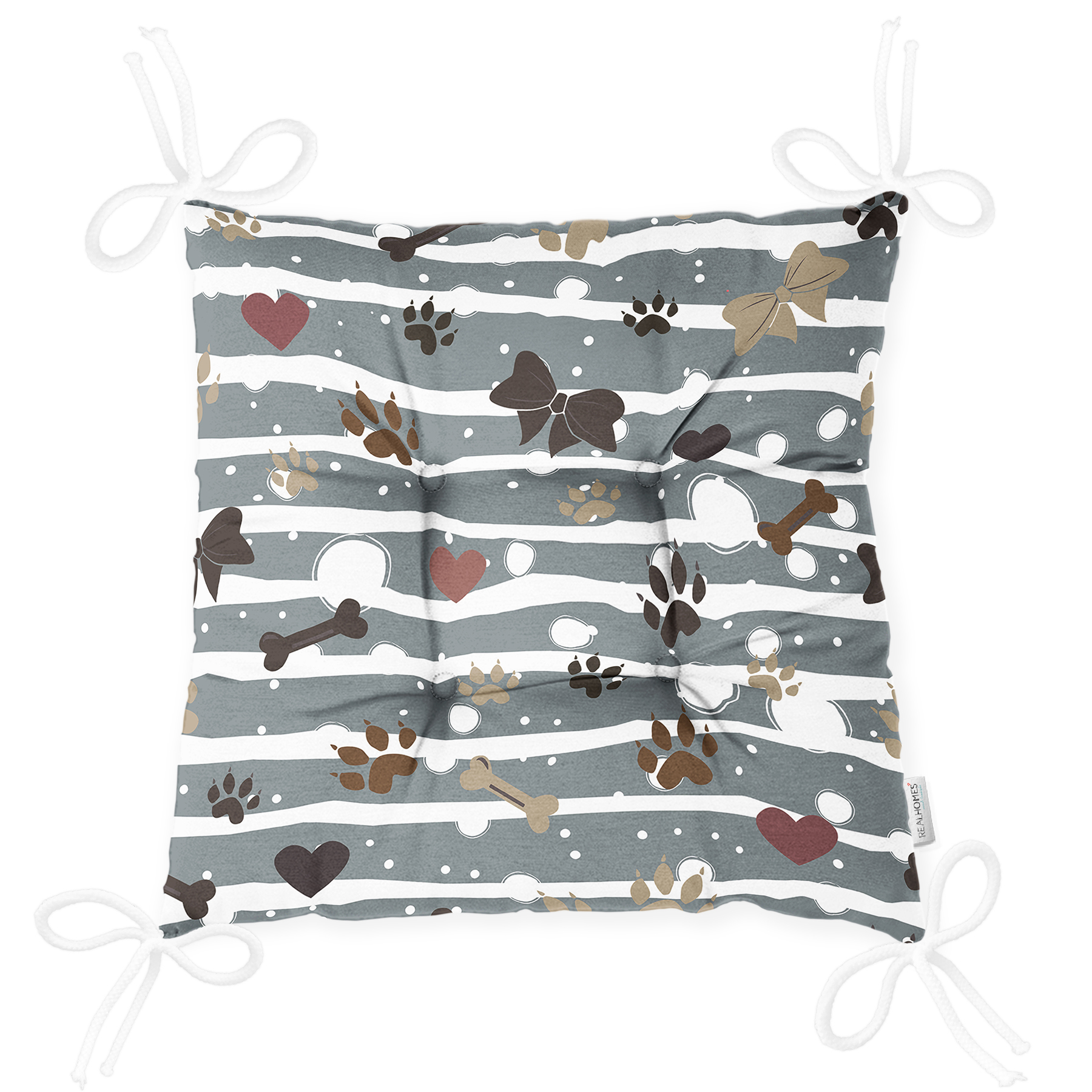 Gri Çizgili Zeminde Pati İzli Dijital Baskılı Modern Pofuduk Sandalye Minderi