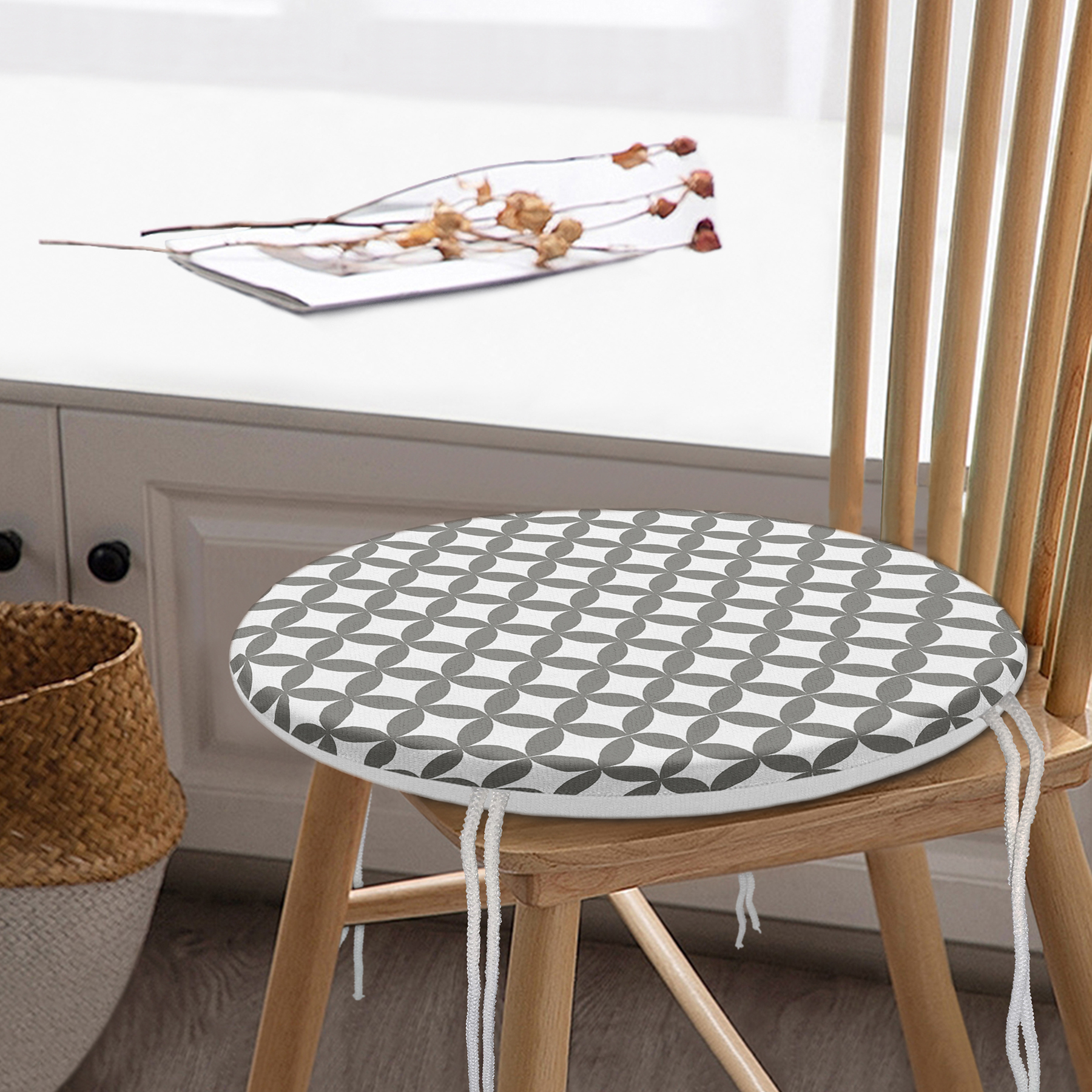 Gri Dairesel Geometrik Dijital Baskılı Yuvarlak Fermuarlı Sandalye Minderi Realhomes