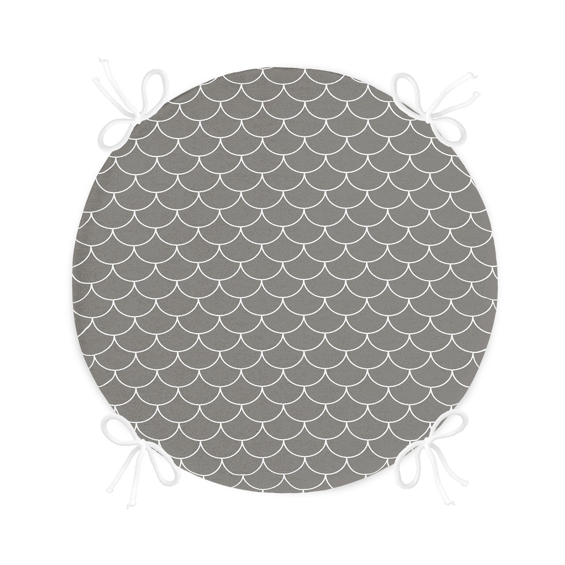 Gri Geometrik Pul Desenli Dijital Baskılı Yuvarlak Fermuarlı Sandalye Minderi Realhomes
