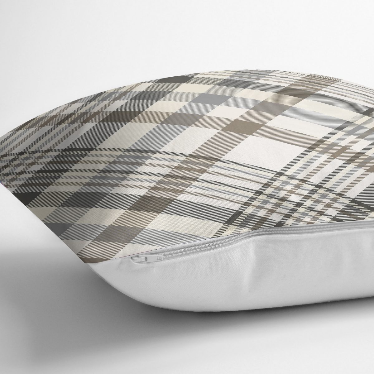 Gri Krem Ekose Desenli Dijital Baskılı Dekoratif Yastık Kırlent Kılıfı Realhomes