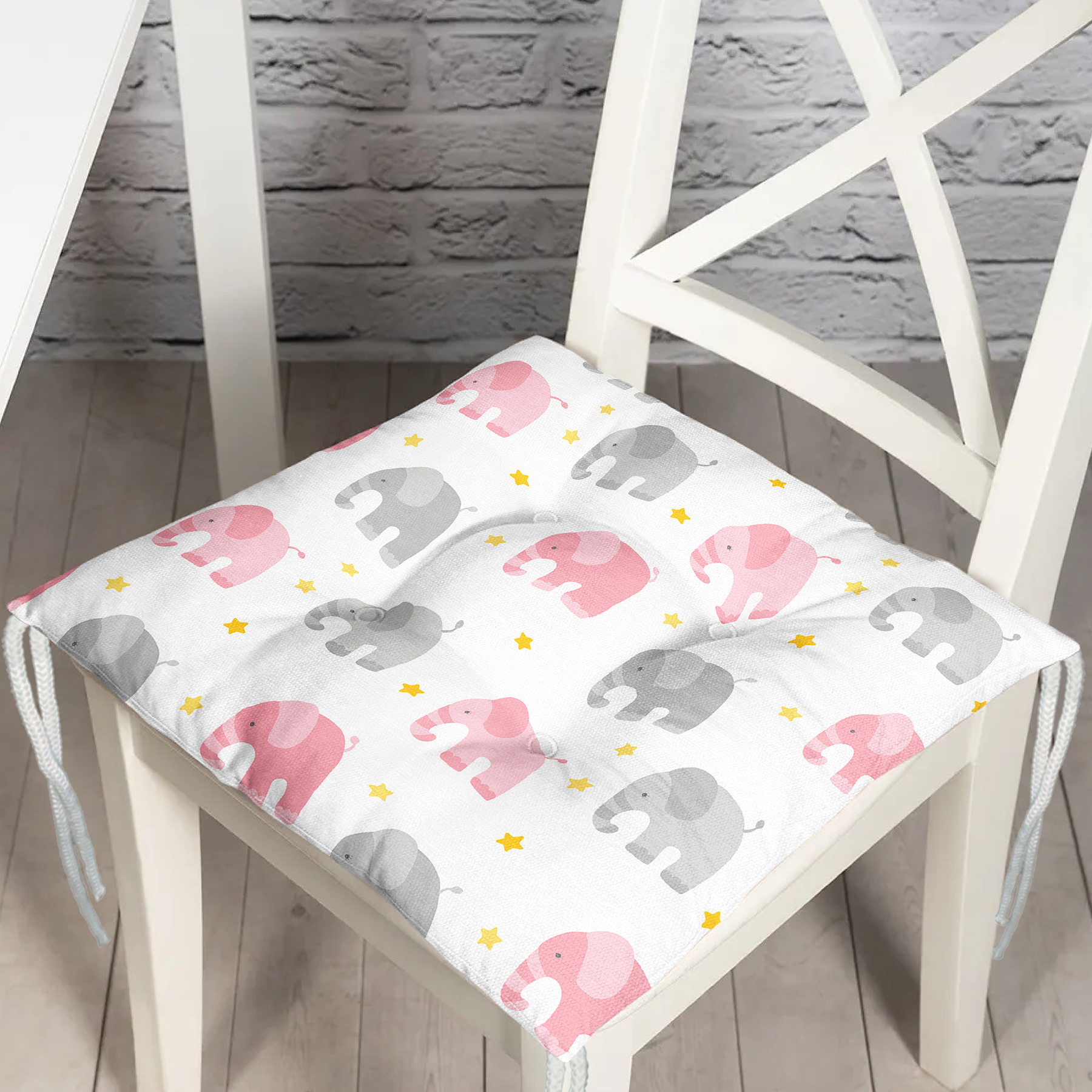 Gri Ve Pembe Fil Desenli Dijital Baskılı Özel Tasarım Modern Pofuduk Sandalye Minderi