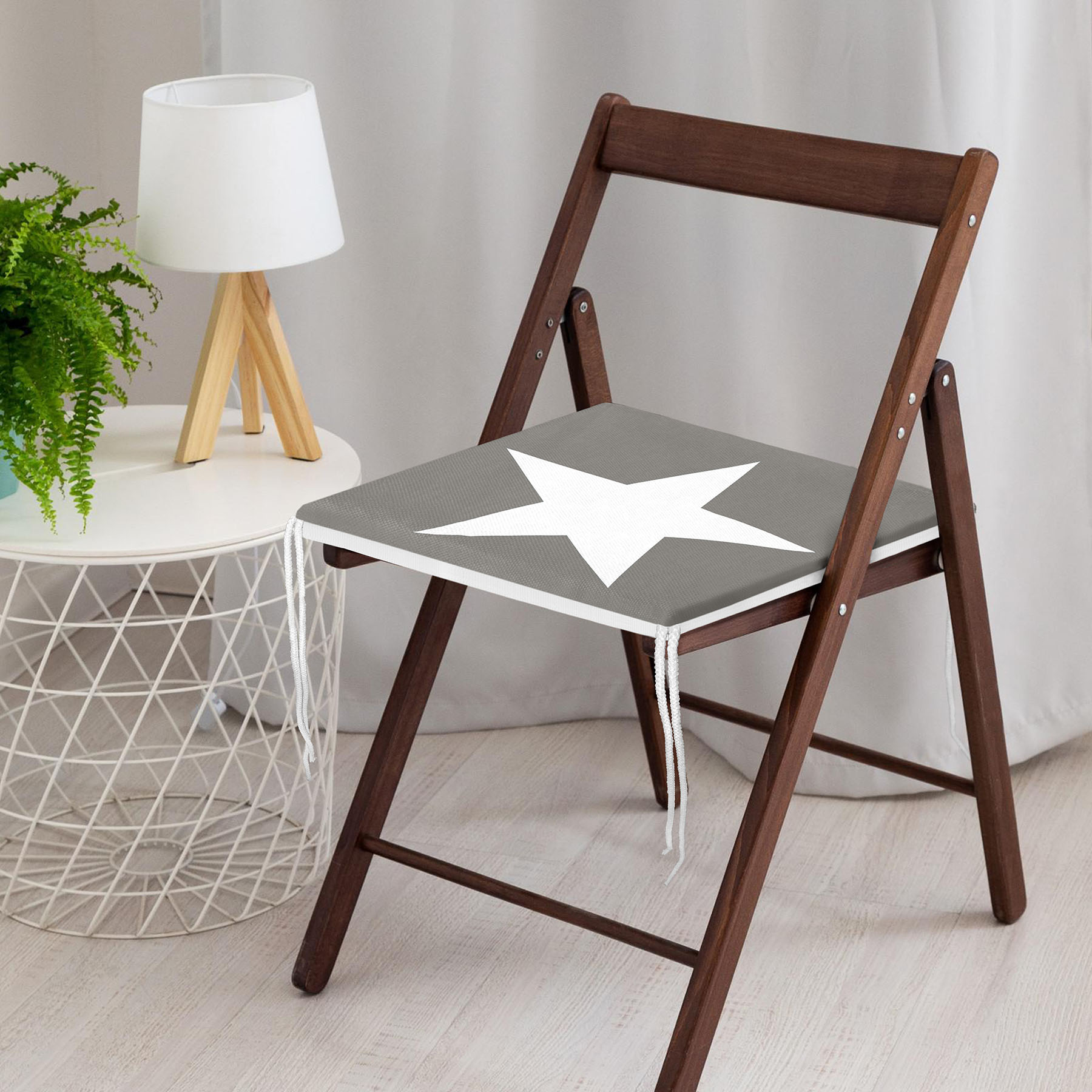 Gri Yıldız Resimli Dekorati Kare Sandalye Minderi 40x40cm ermua
