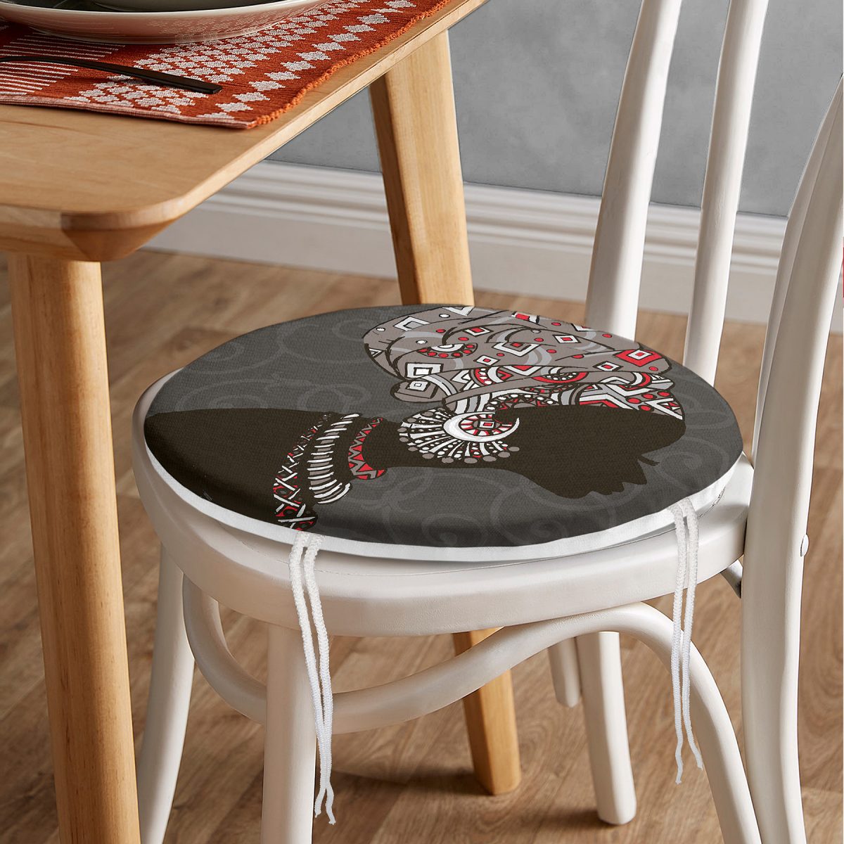 Gri Zemin Desenli Siyahi Kadın Motifli Yuvarlak Fermuarlı Sandalye Minderi Realhomes