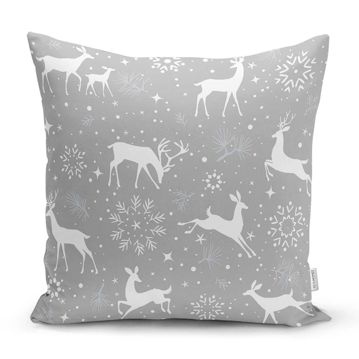 Gri Zemin Üzerinde Geyik Desenli Dijital Baskılı Modern Yastık Kırlent Kılıfı Realhomes