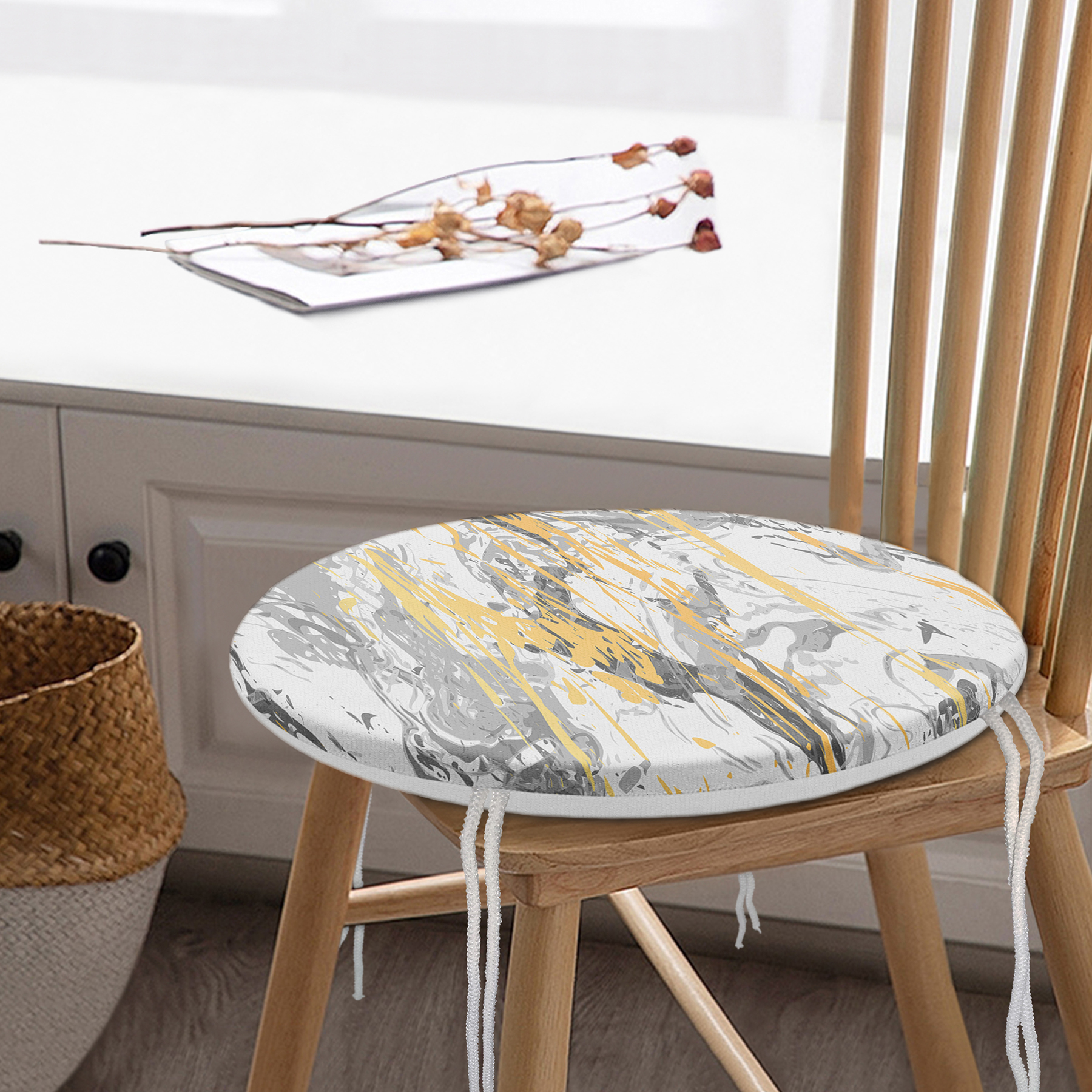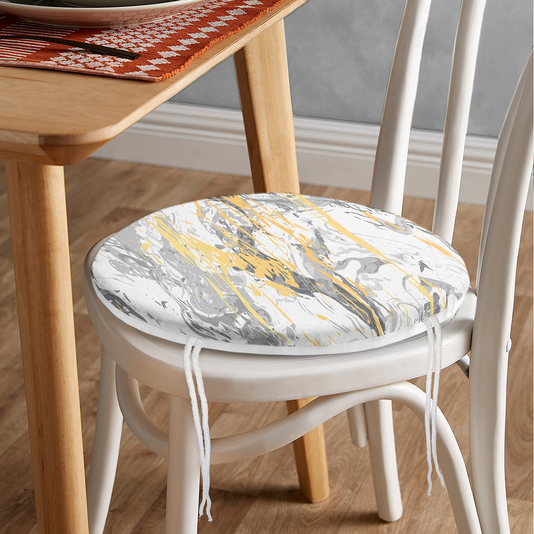 RealHomes Dijital Baskılı Yuvarlak Fermuarlı Sandalye Minderi, kumaş seçimi ve desen detaylarıyla şık bir dekorasyon ögesi olarak kullanımınıza sunulmaktadır. Her bir desen RealHomes tasarımcıları tarafından özenle tasarlanmış ve satışa sunulmuştur. Fotoğraf kalitesinde canlı ve gerçekçi baskılarımız yıkamaya ve kullanıma bağlı olarak solma yapmaz, yıllar boyu ilk günkü özelliğini korur.