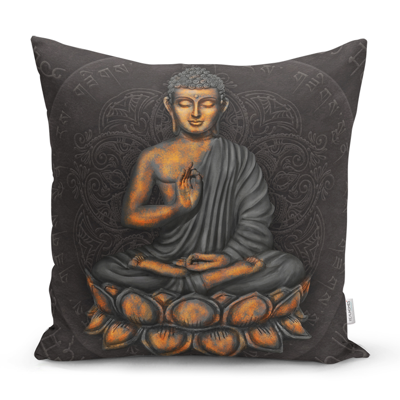 Gri Zeminde Buda Heykeli Motifli Özel Tasarım Kırlent Kılıfı Realhomes
