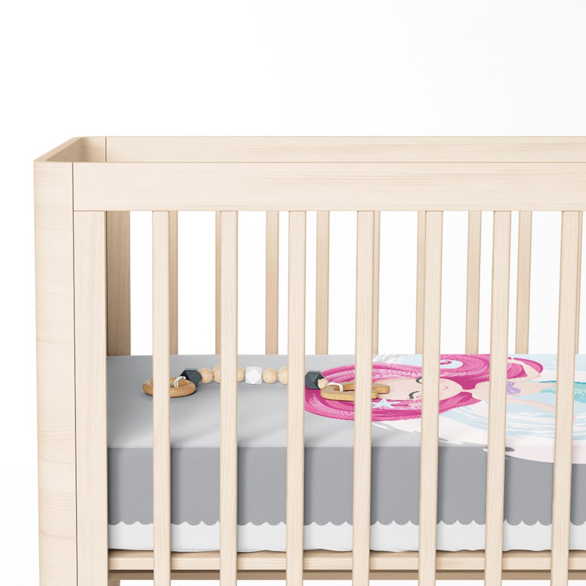 Gri Zeminde Denizkızı Desenli Dijital Baskılı Çocuk Odası Yatak Örtüsü
