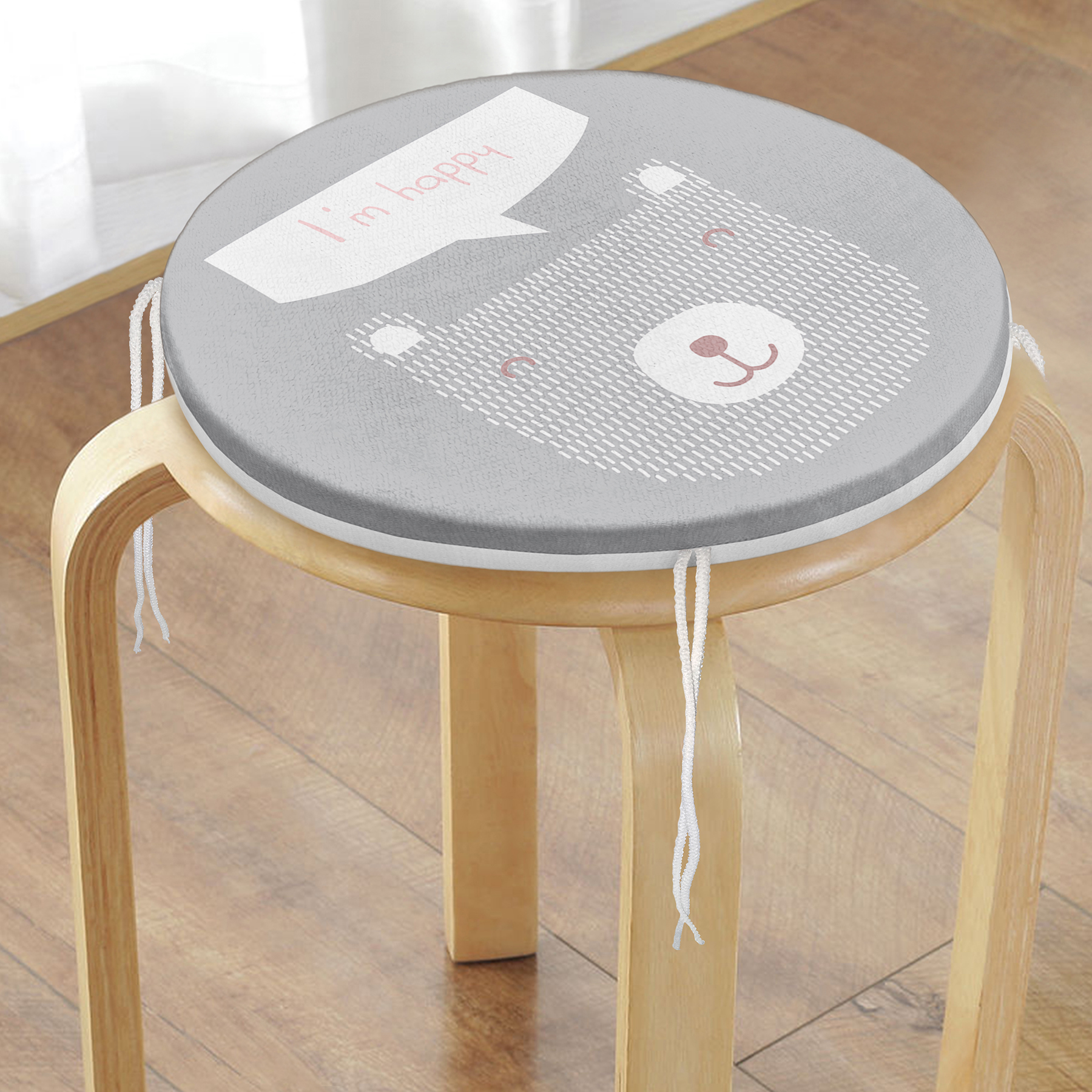 Gri Zeminde Mutlu Ayıcık Desenli Bebek Odası Yuvarlak Fermuarlı Sandalye Minderi