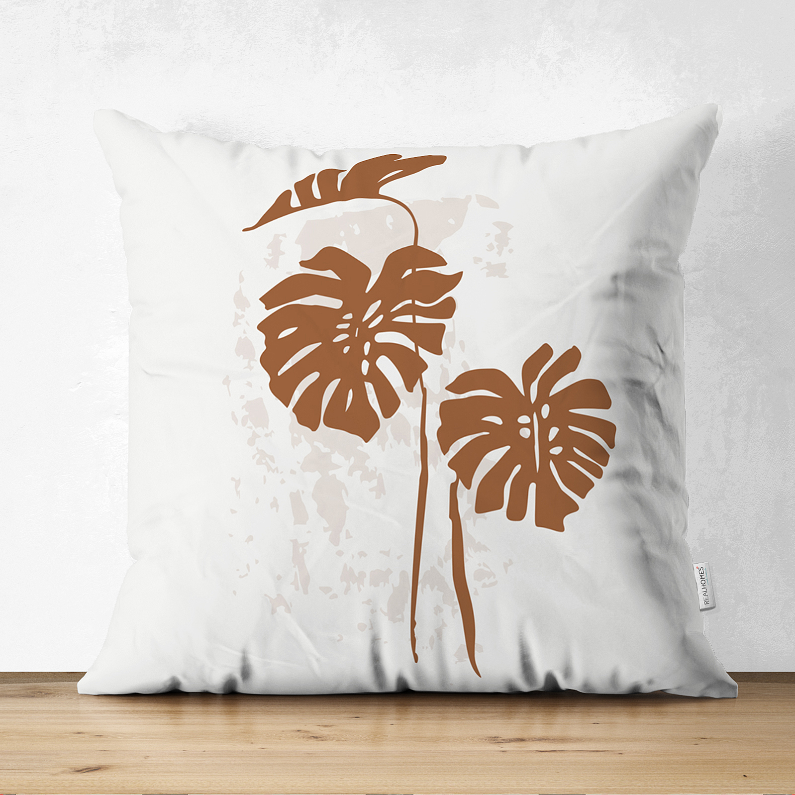 Gri Zeminde Palmiye Yaprakları Motifli Çift Taraflı Süet Kırlent Kılıfı Realhomes