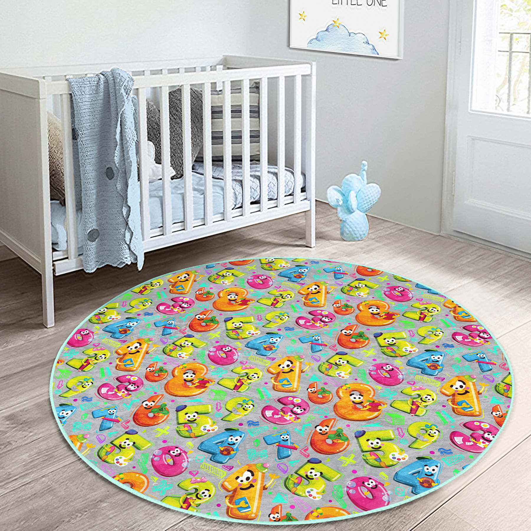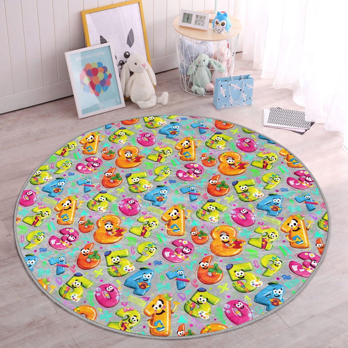 Gri Zeminde Renkli Sayılar Çocuk & Genç Odası Makinede Yıkanabilir Kaymaz Tabanlı Yuvarlak Çocuk Halısı