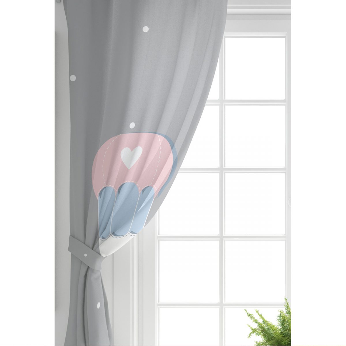 Gri Zeminde Uçan Balon Desenli Bebek Odası Fon Perde