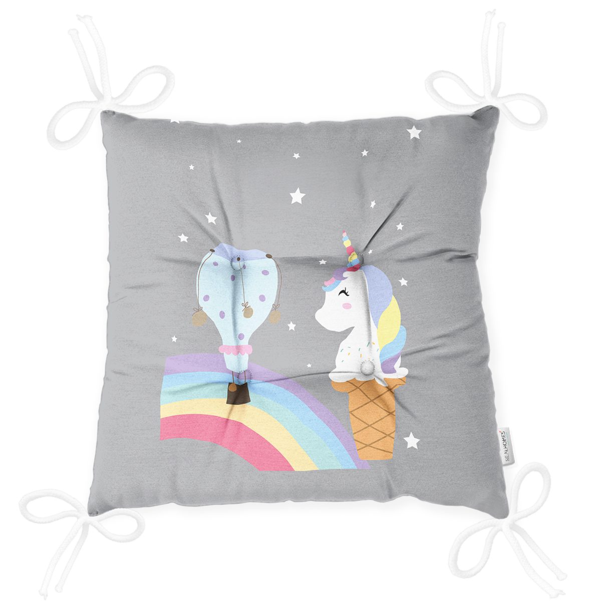 Gri Zeminde Unicorn Tasarımlı Çocuk Odası Pofuduk Sandalye Minderi