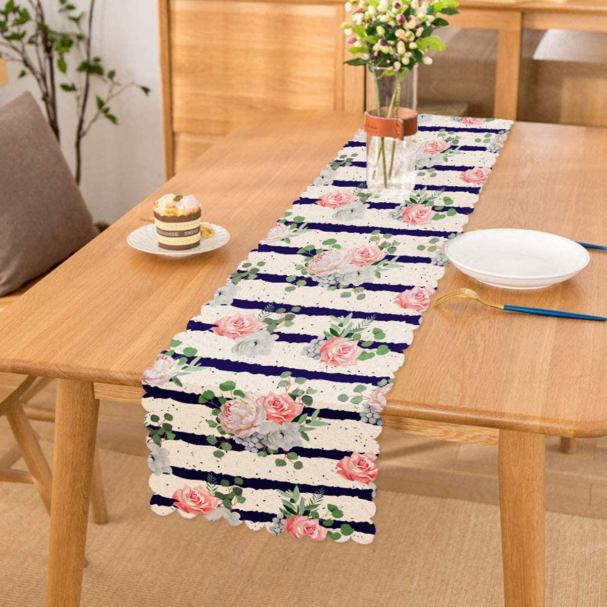 Gül Demeti Desenli Dijital Baskılı Runner