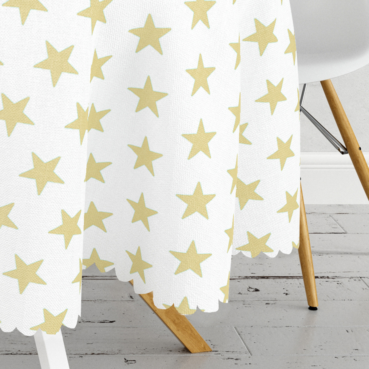 Hardal Renk Yıldız Dijital Baskılı Yuvarlak Masa Örtüsü – Çap 140cm