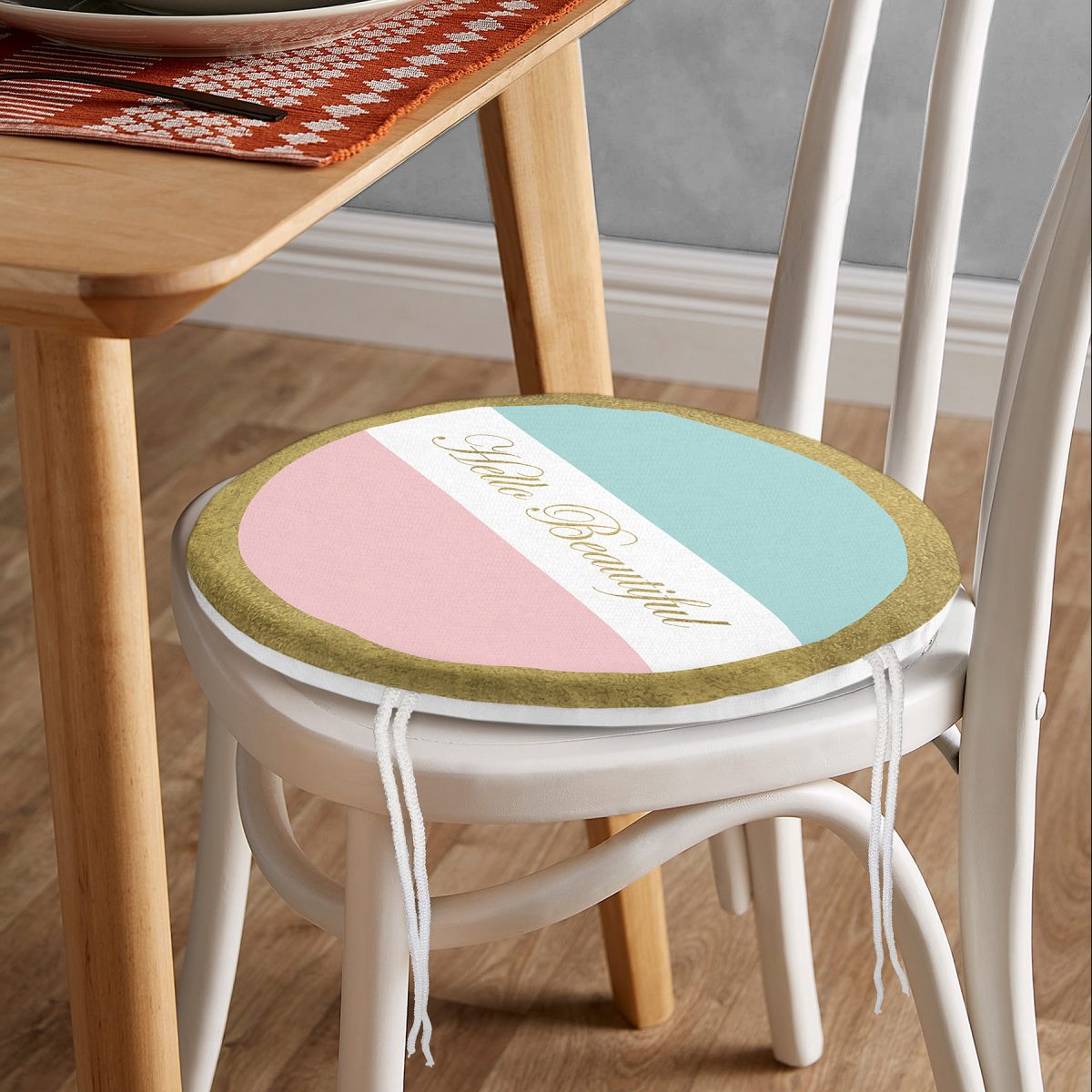 Hello Beautiful Mavi & Pembe Dijital Baskılı Yuvarlak Fermuarlı Sandalye Minderi