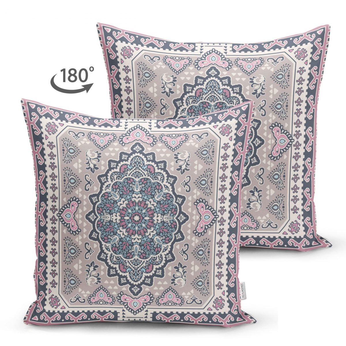 Hint Halı Çizimli Çift Taraflı Dijital Baskılı Süet Yastık Kırlent Kılıfı Realhomes