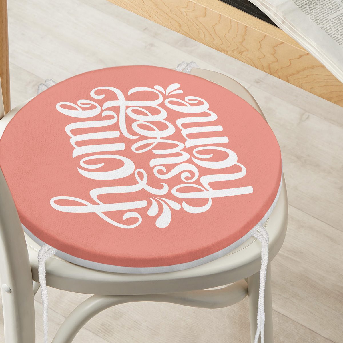 Home Sweet Home Dijital Baskılı Yuvarlak Fermuarlı Sandalye Minderi