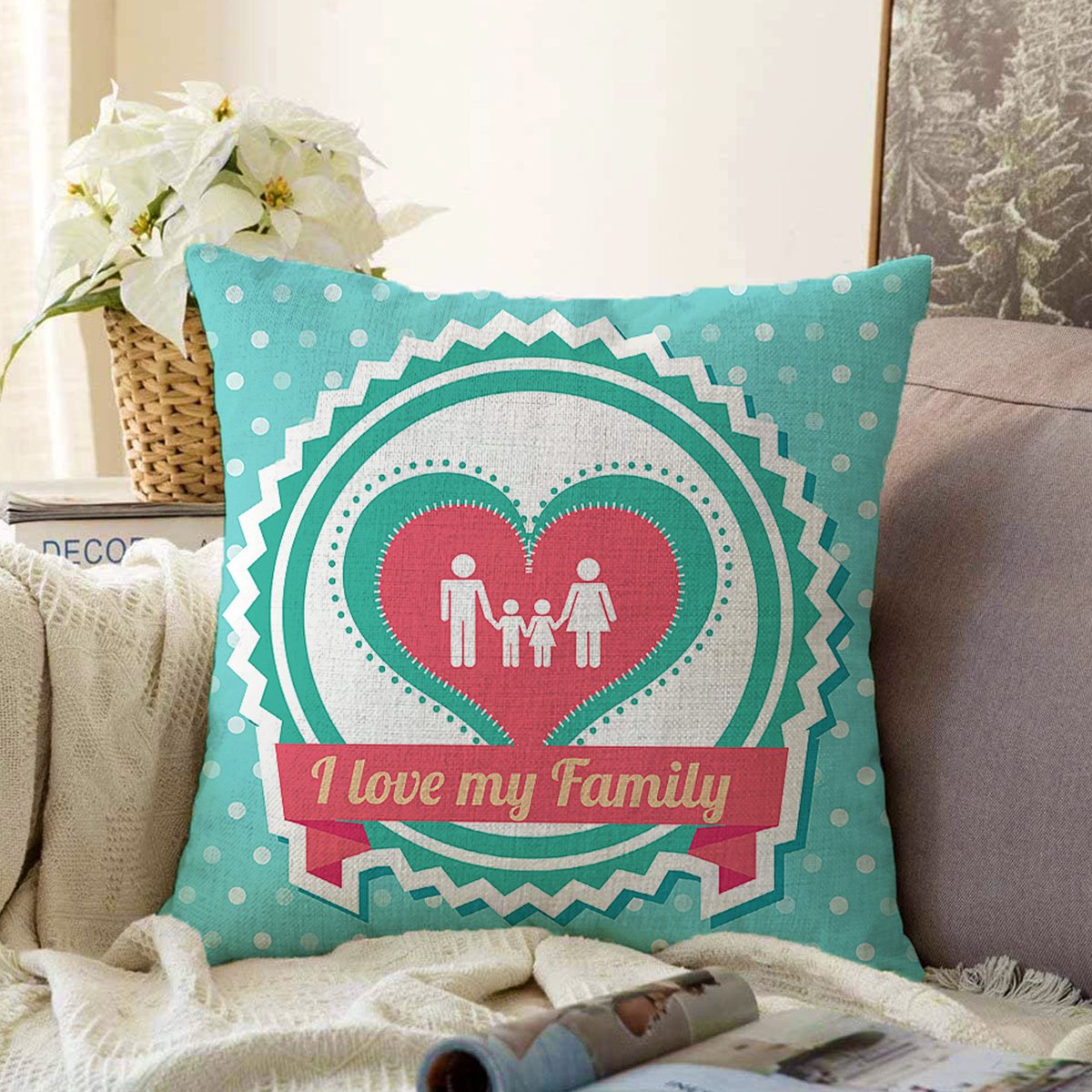 I Love My Family Aile Temalı Dijital Baskılı Dekoratif Raşel Kadife Yastık Kırlent Kılıfı