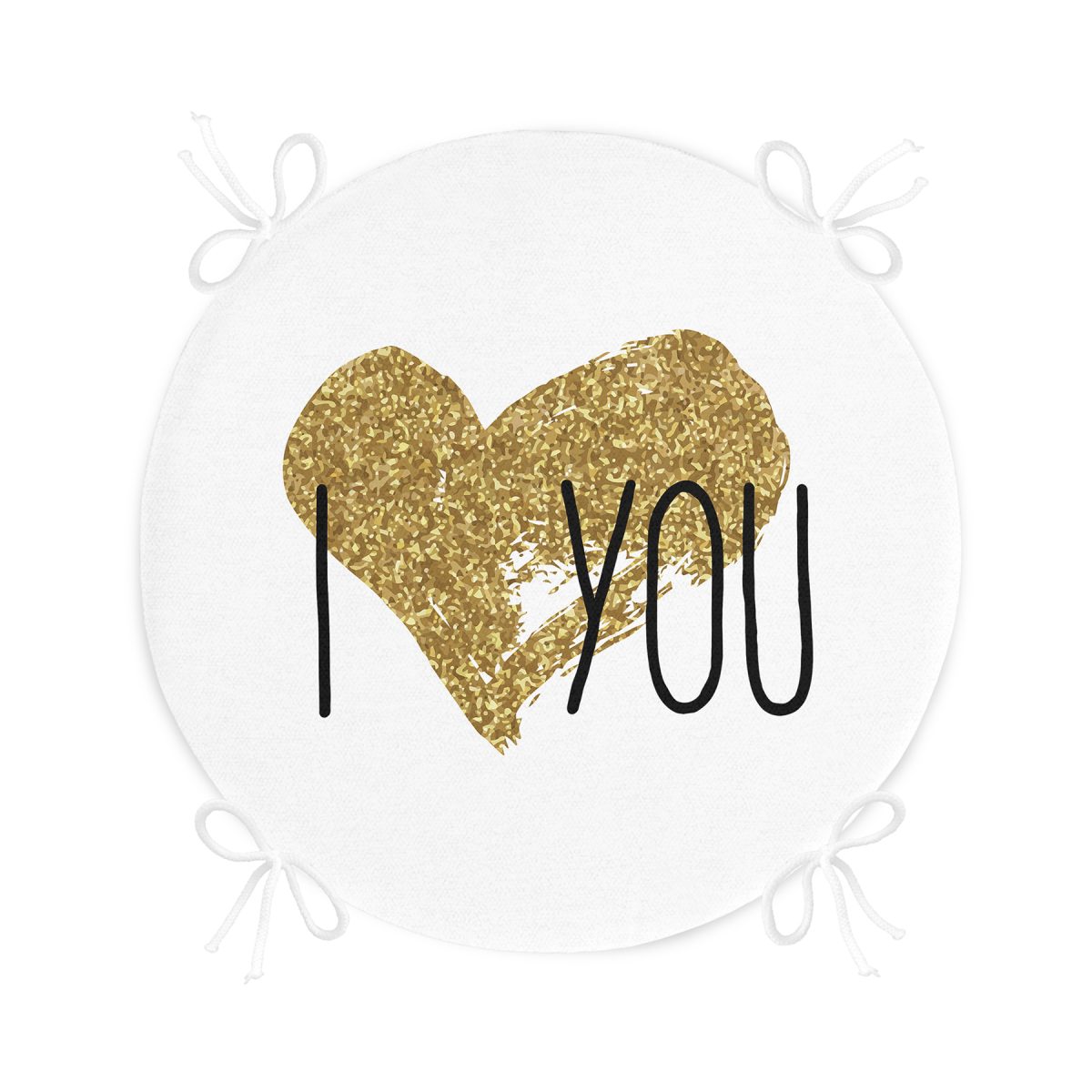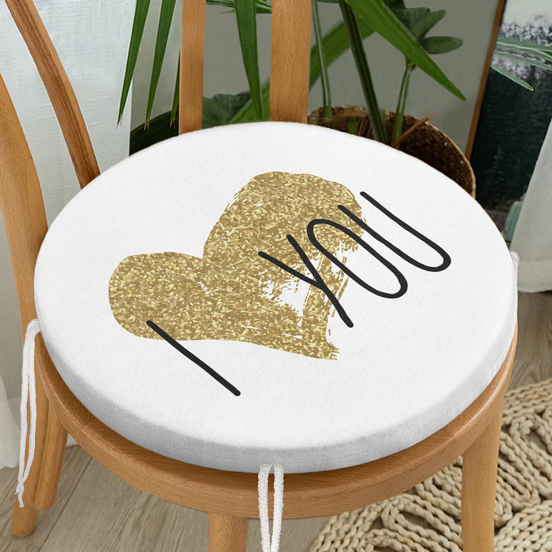 I Love You Aşk Temalı Dijital Baskılı Modern Yuvarlak Fermuarlı Sandalye Minderi