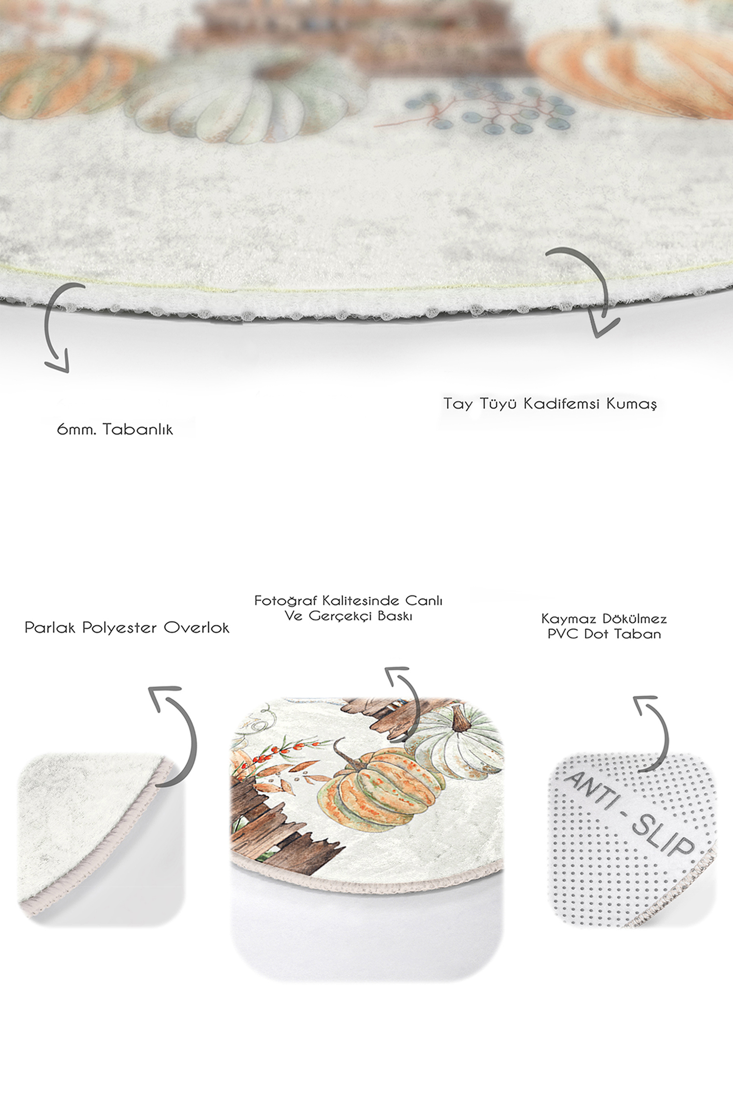 Kabak Eskitme Motifli Dijital Baskılı 2’li Oval Kaymaz Tabanlı Banyo & Mutfak Paspas Takımı