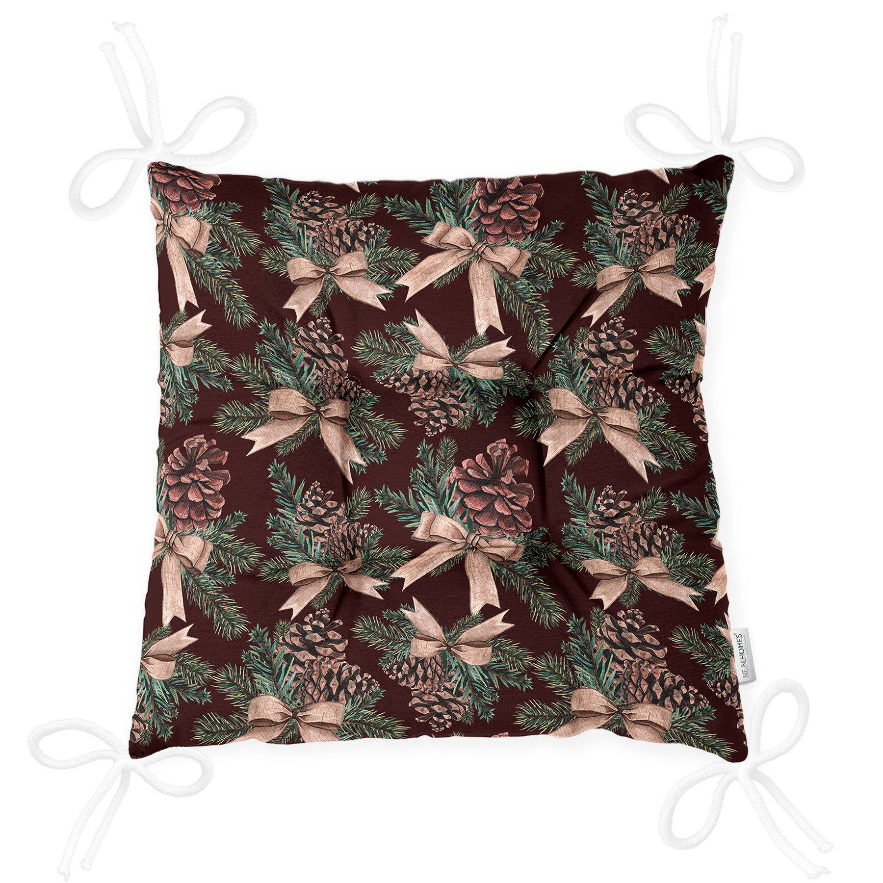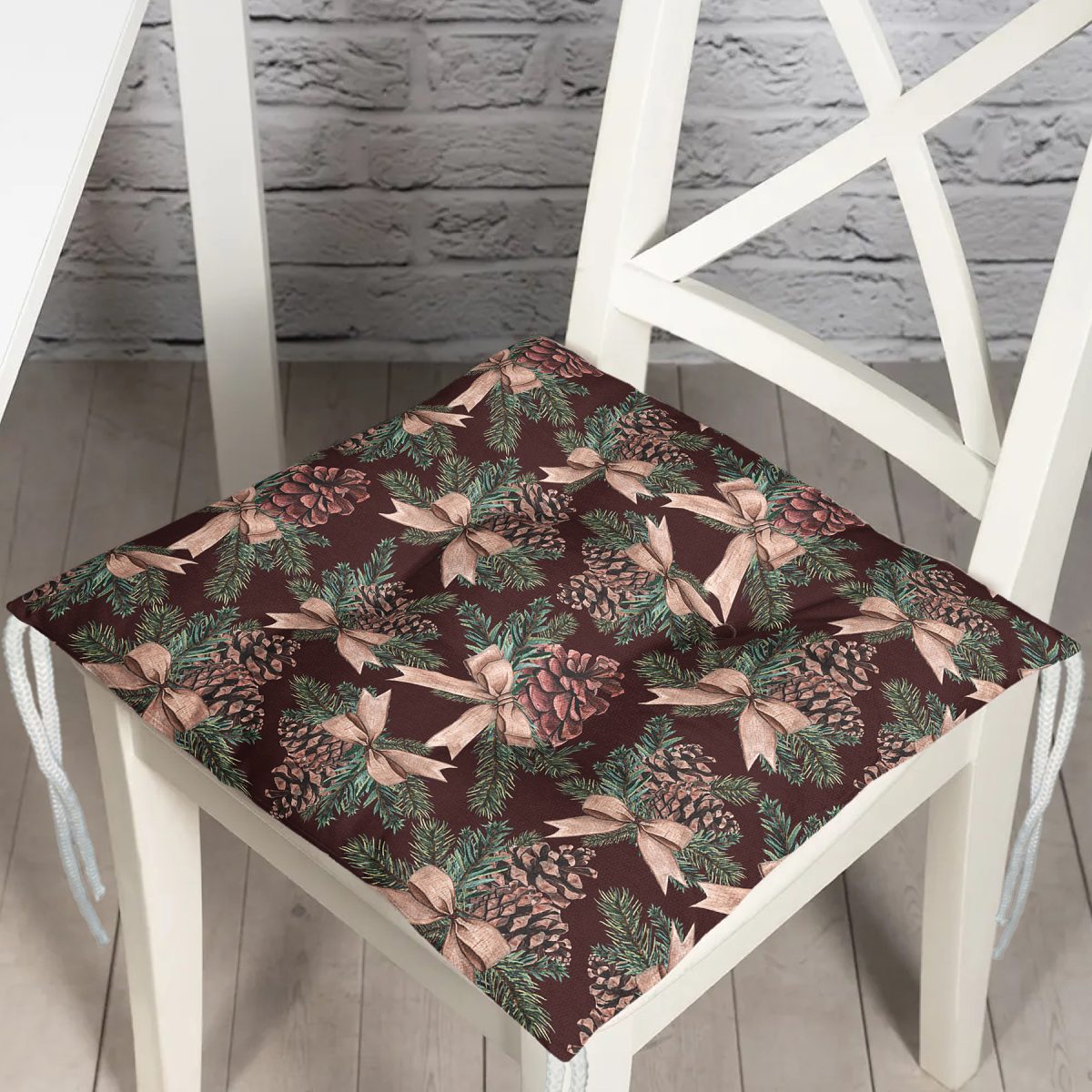 Kahve Zemin Kozalak Tasarımlı Dijital Baskılı Modern Pofuduk Sandalye Minderi Realhomes
