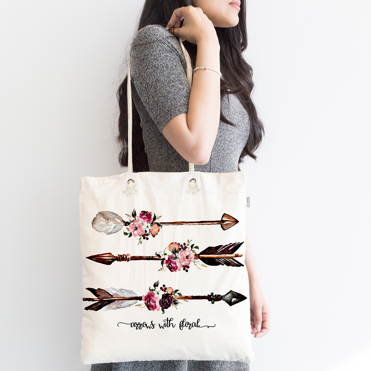 Kahverengi Ok Çizimli Çiçek Desenli Kumaş Plaj Çantası Realhomes