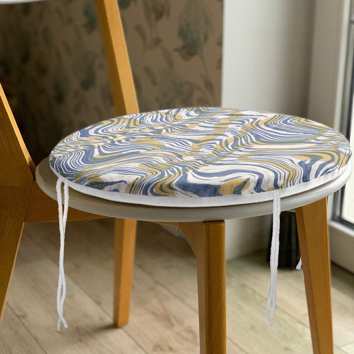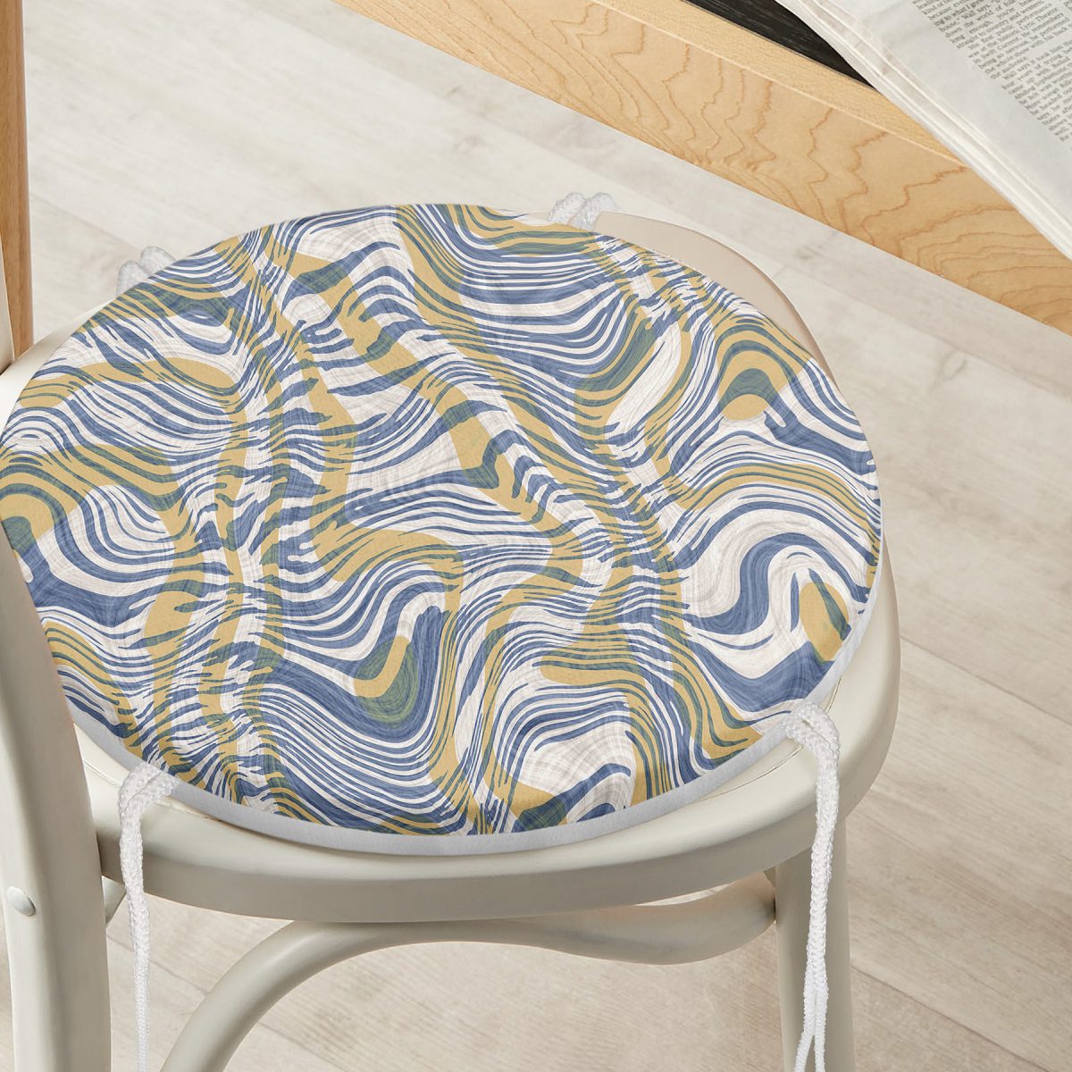 Kahverengi Ve Lacivert Renkte Dalgalı Desen Dijital Baskılı Yuvarlak Fermuarlı Sandalye Minderi