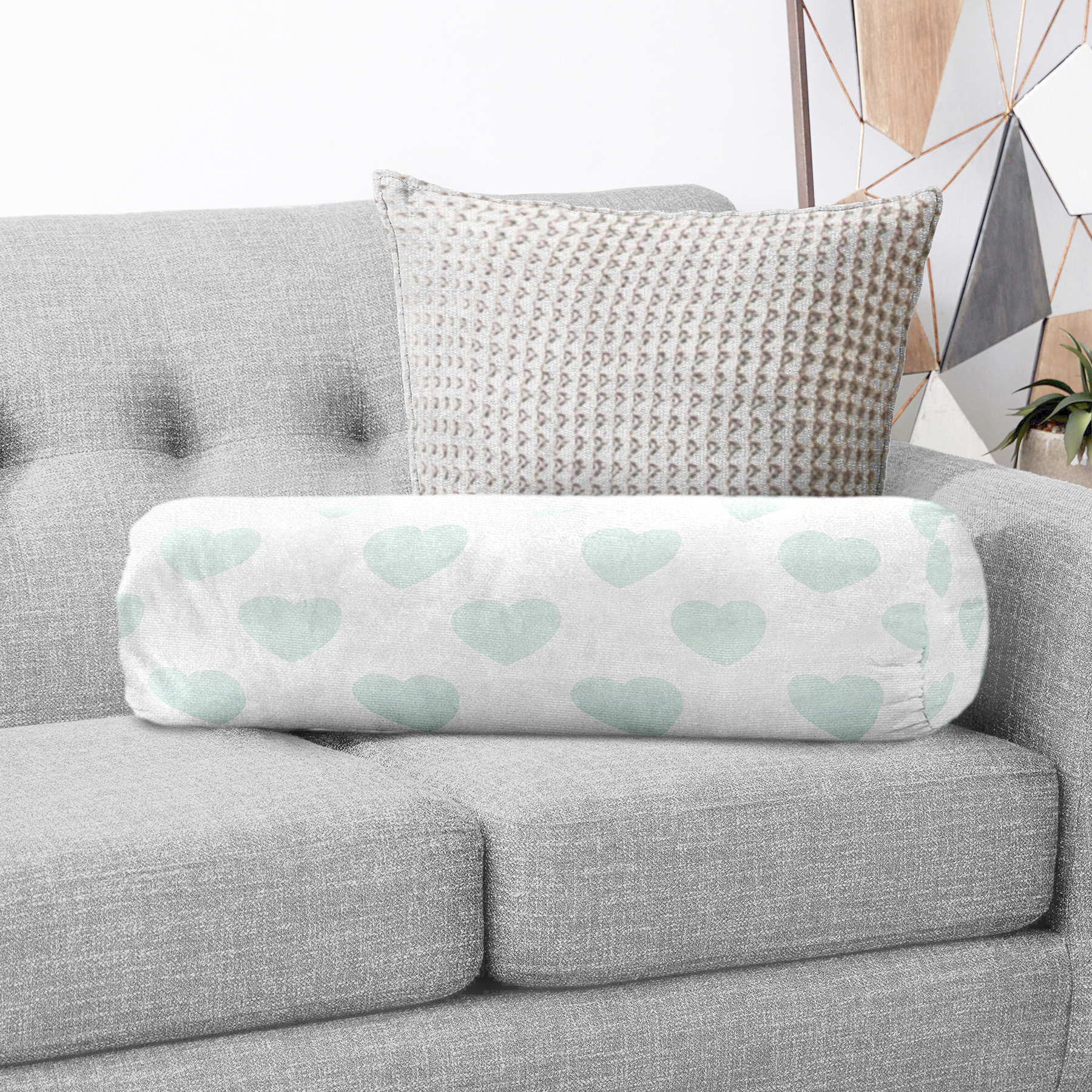 Kalp Desen Dijital Baskılı İç Dolgulu – Fermuarlı Süet Silindir Rulo Yastık Kırlent