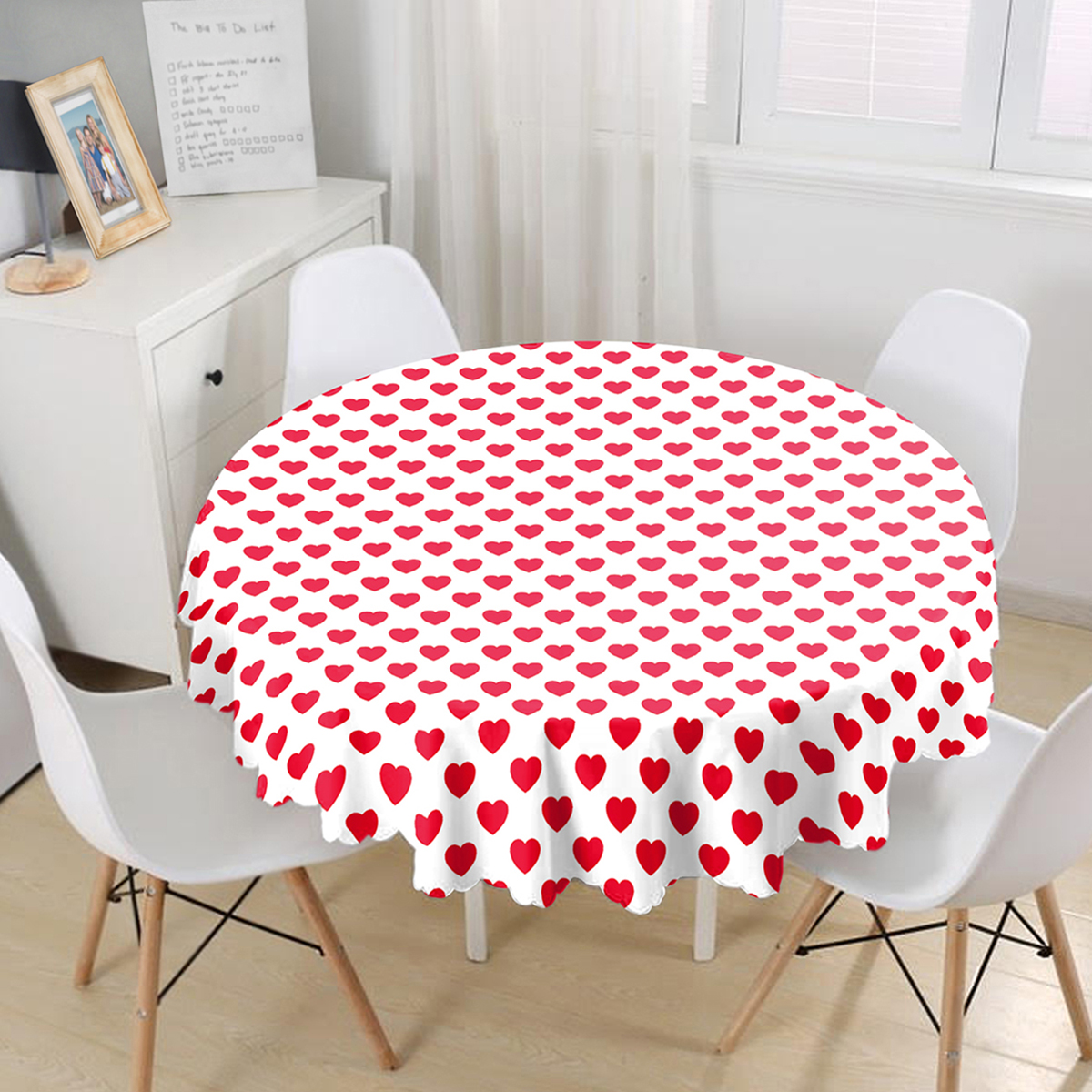 Kalp Desen Dijital Baskılı Yuvarlak Masa Örtüsü – Çap 140cm