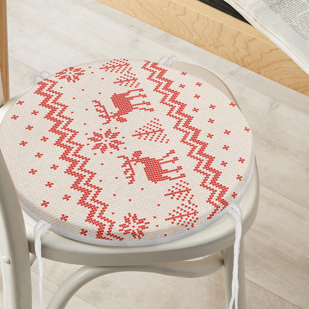 Kanaviçe Motifli Yılbaşı Temalı Dijital Baskılı Yuvarlak Fermuarlı Sandalye Minderi Realhomes