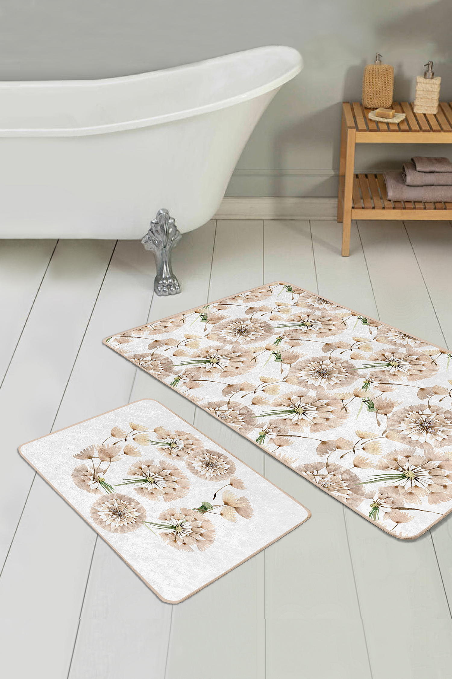 Karahindiba Temalı Dijital Baskılı Özel Tasarım 2’li Kaymaz Tabanlı Banyo & Mutfak Paspas Takımı