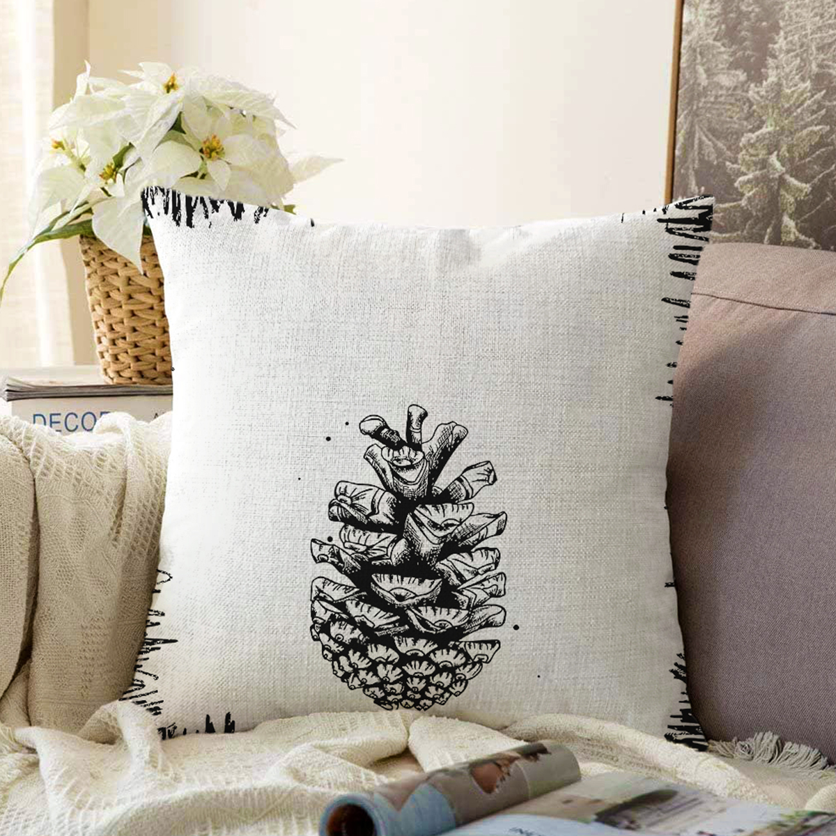 Karakalem Kozalak Tasarımlı Dijital Baskılı Modern Raşel Kadife Yastık Kırlent Kılıfı
