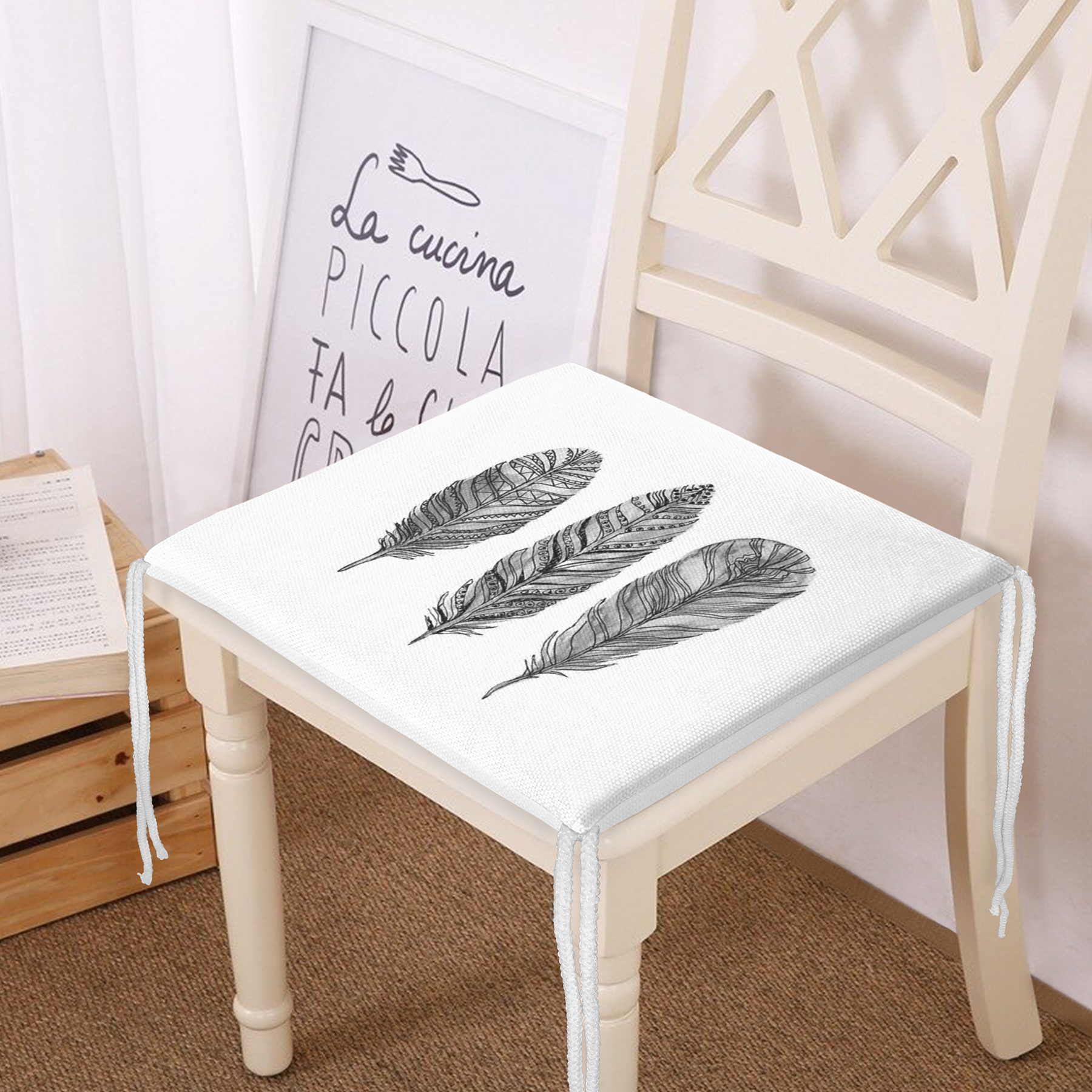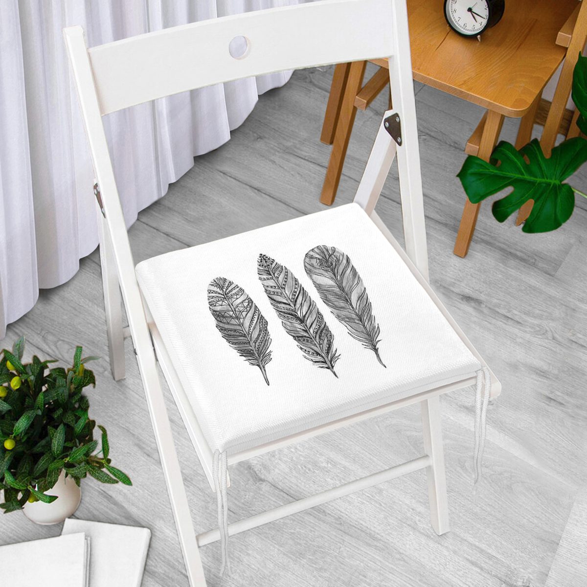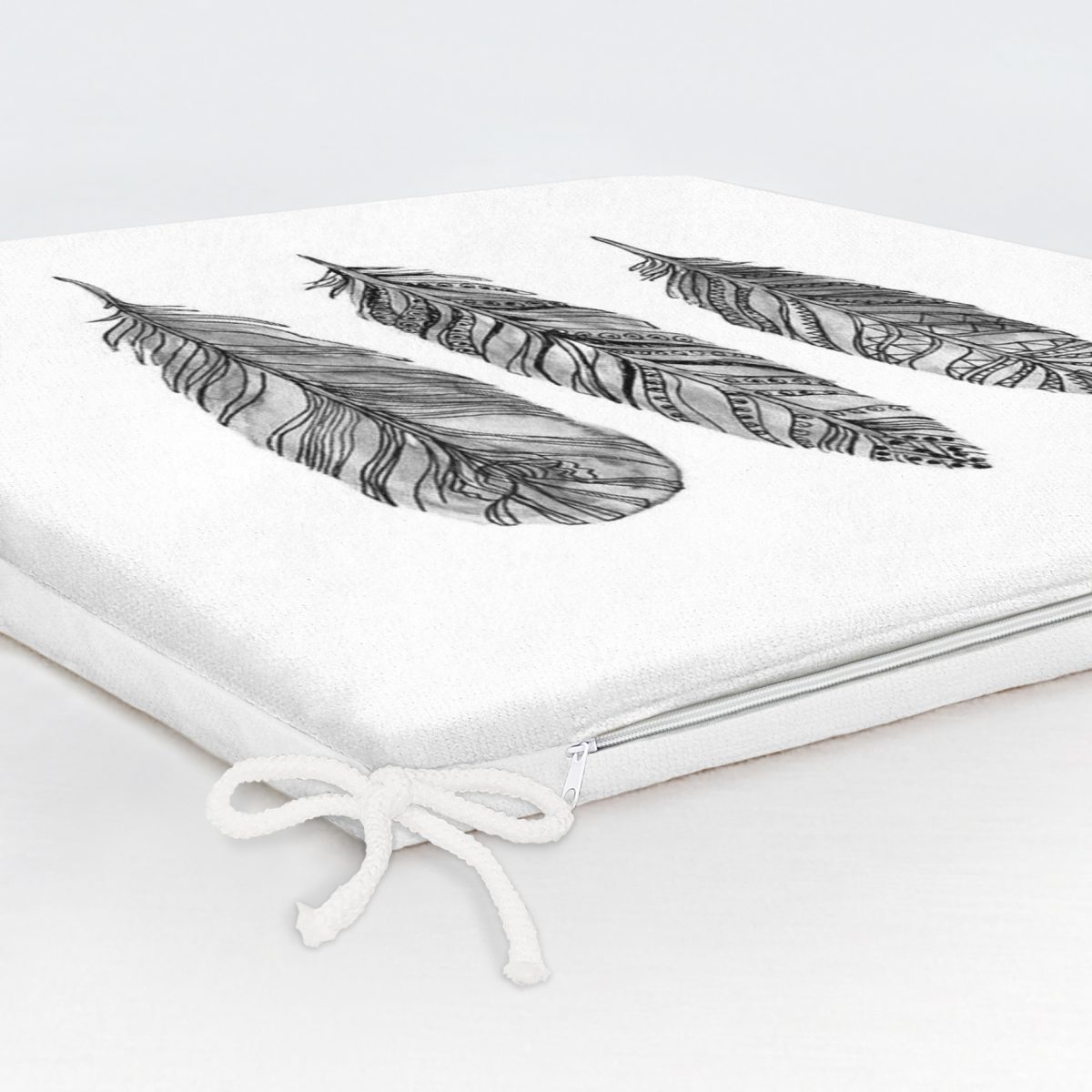 Karakalem Tüy Desenli Dikital Baskılı Modern Fermuarlı Sandalye Minderi