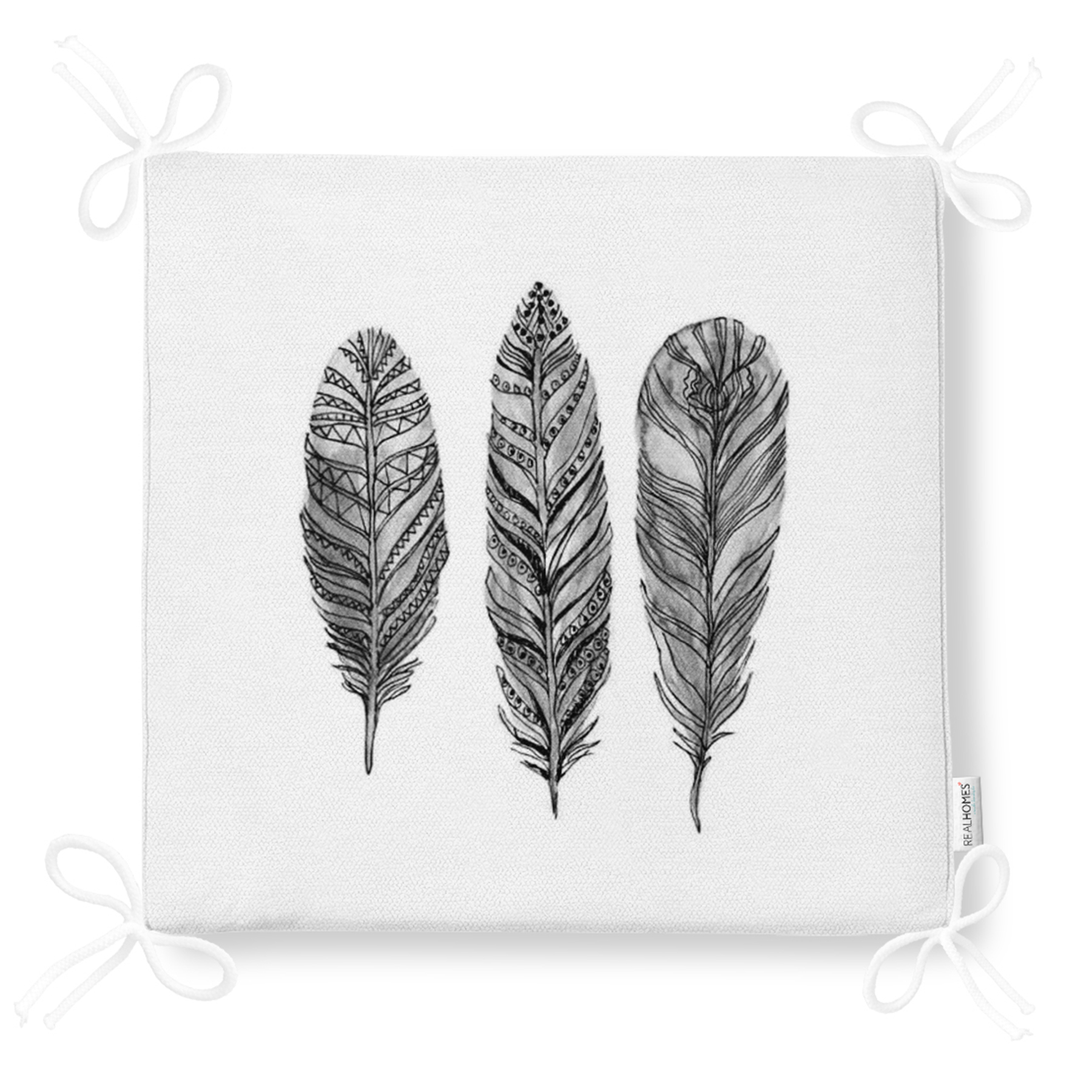 Karakalem Tüy Desenli Dikital Baskılı Modern Fermuarlı Sandalye Minderi Realhomes