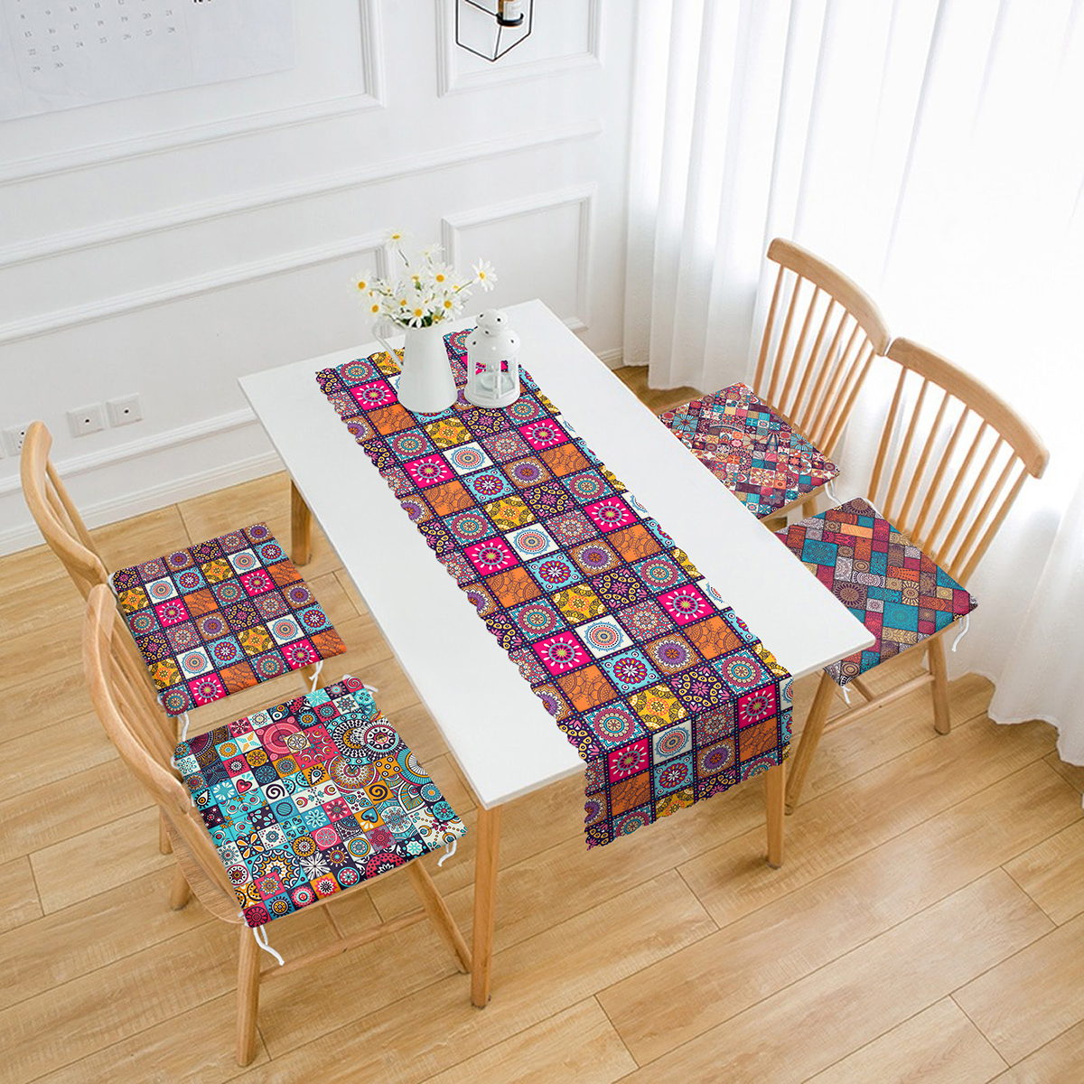 RealHomes Özel Tasarım Dijital Baskılı Sandalye Minderi ve Runner Seti