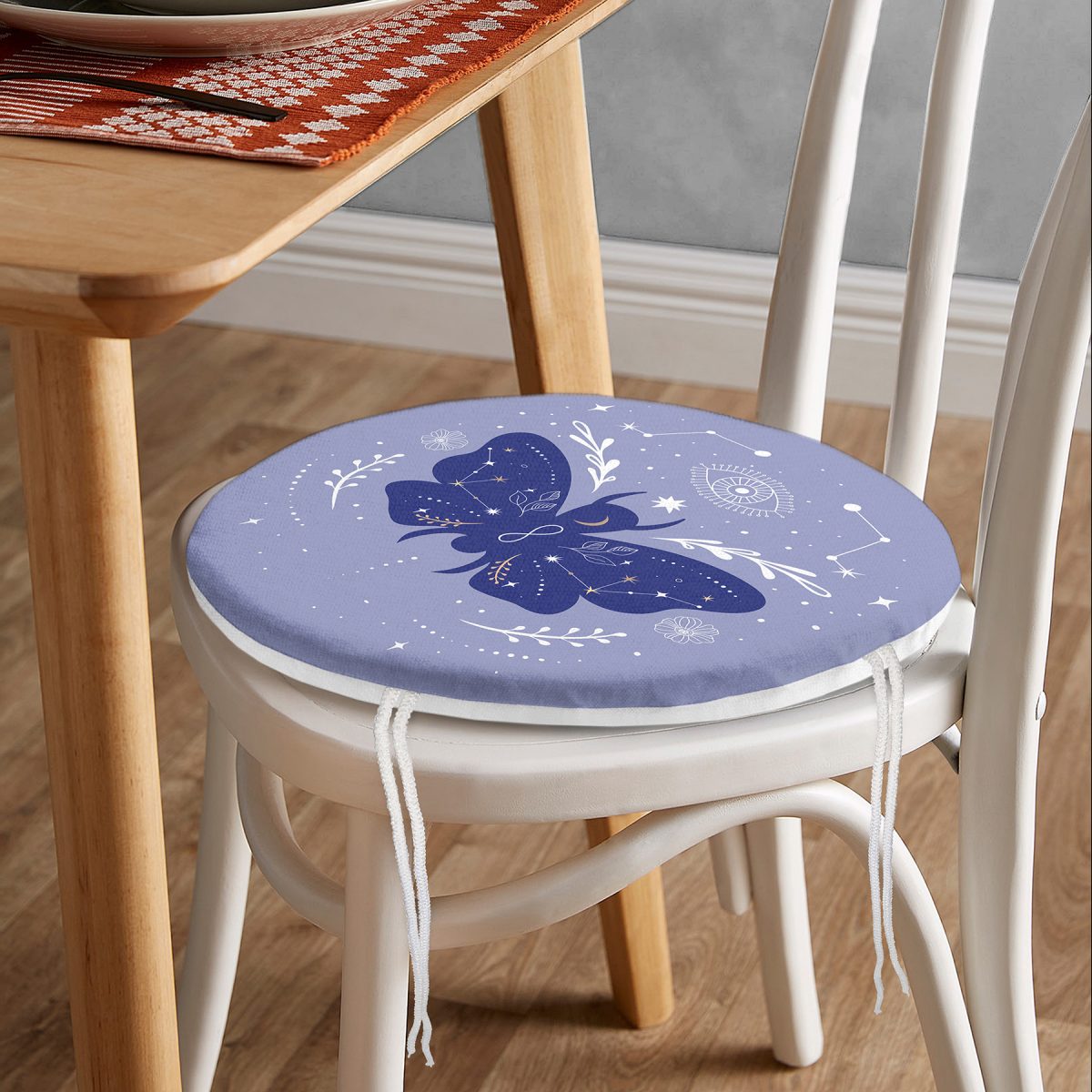 Karolina Mavisi Zeminli Sonsuz Kelebek Desenli Modern Yuvarlak Fermuarlı Sandalye Minderi Realhomes