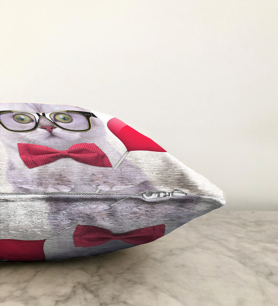 Kedili Dijital Baskılı Dekoratif Raşel Kadife Yastık Kırlent Kılıfı